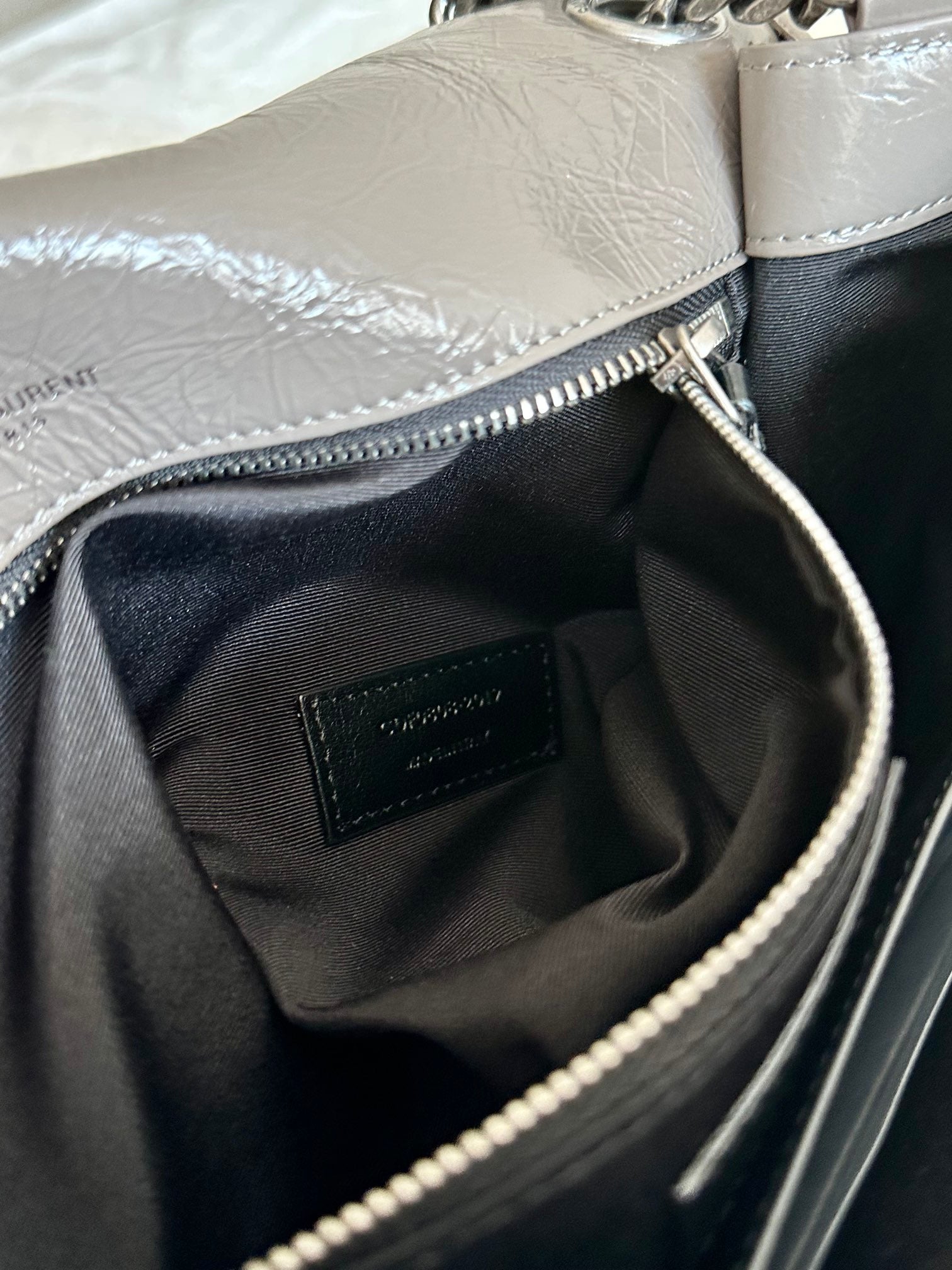 YSL Niki Medium Bag 28cm Grey Crinkled Vintage Leather