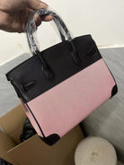 HM Quadrille Birkin 25cm Black Swift Leather Pink Toile