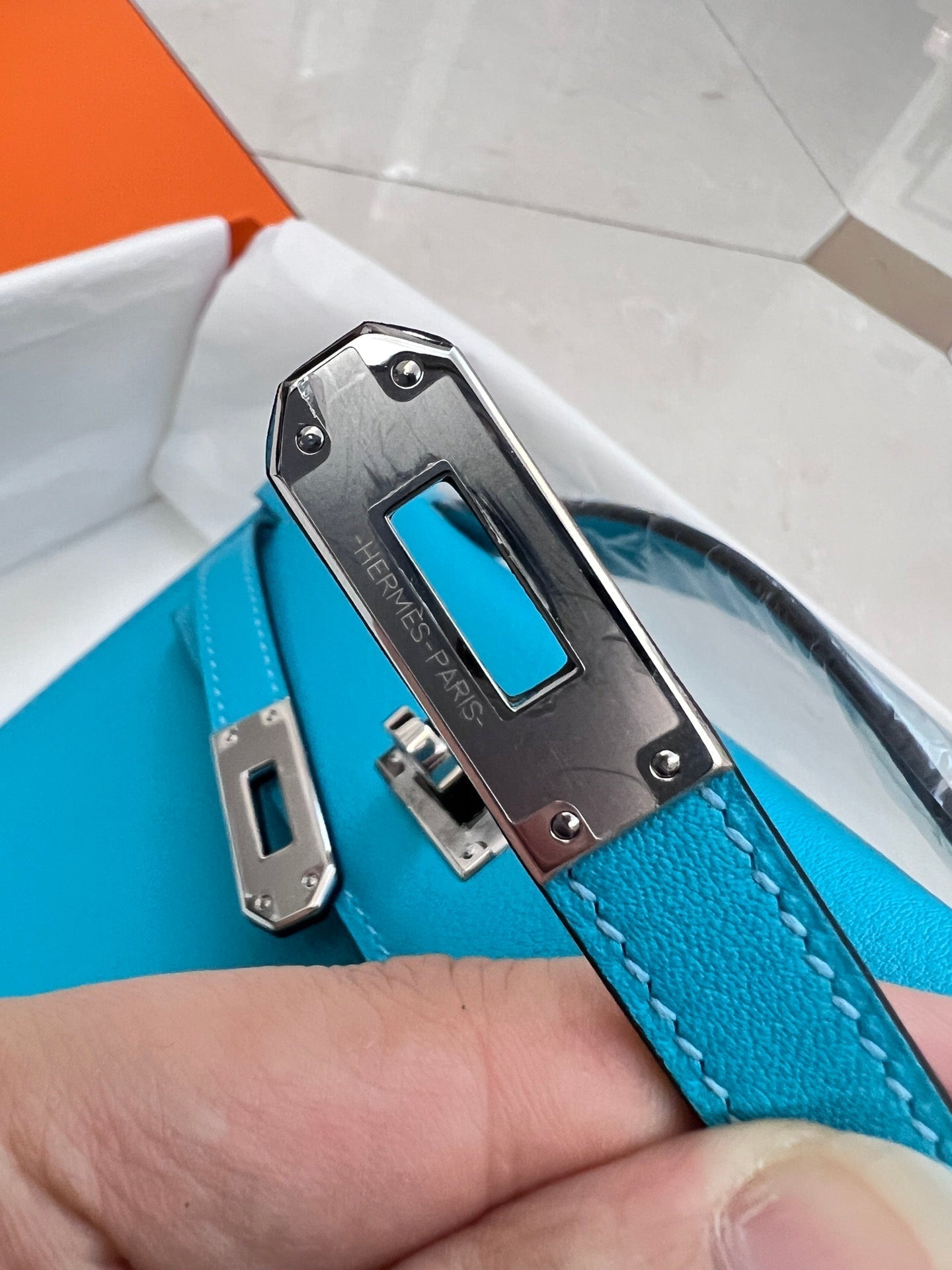 HM KELLY POCHETTE 22CM CERULEAN SWIFT SILVER HARDWARE
