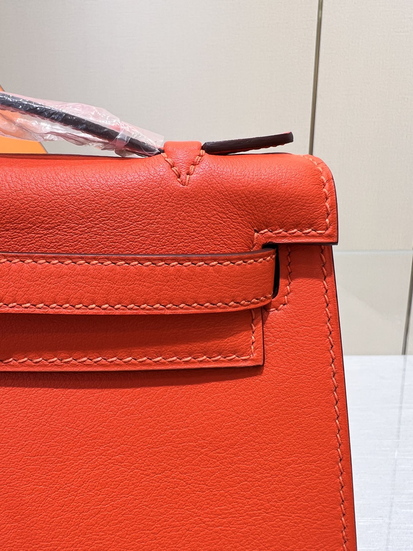 HM KELLY POCHETTE 22CM RED SWIFT GOLD HARDWARE