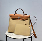 Herbag 31 Toile Beige Canvas Gold Cowhide Leather