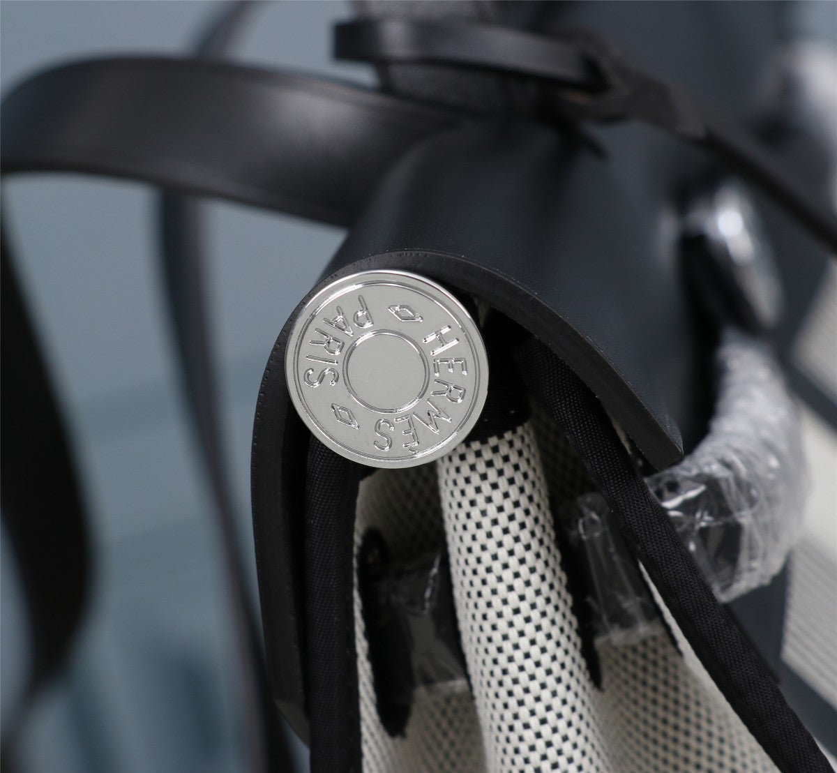 HM HERBAG ZIP 31 BLACK AND WHITE LINE MOTIF CANVAS