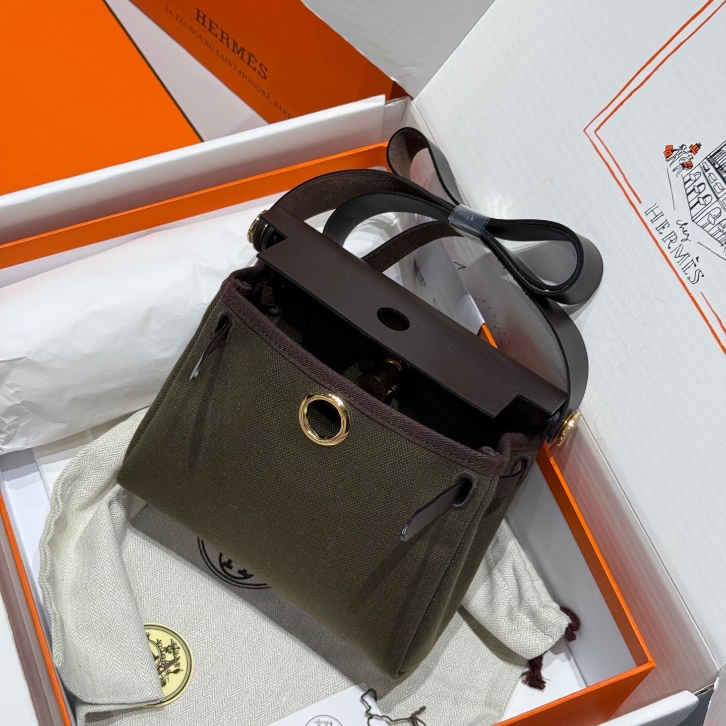 HM Mini Herbag Gold Buckle 20 Army Green Canvas and Hunter Cowhide 243360