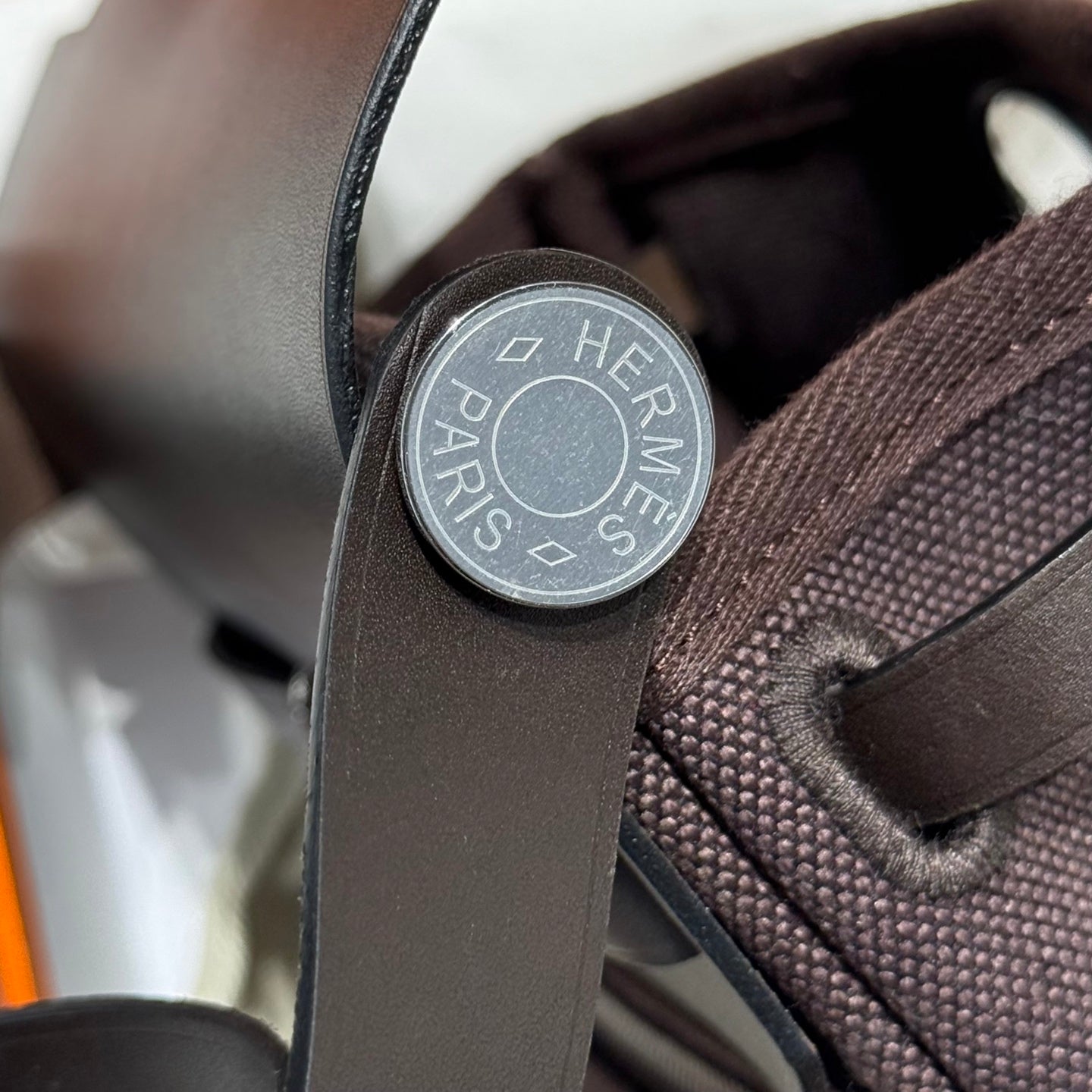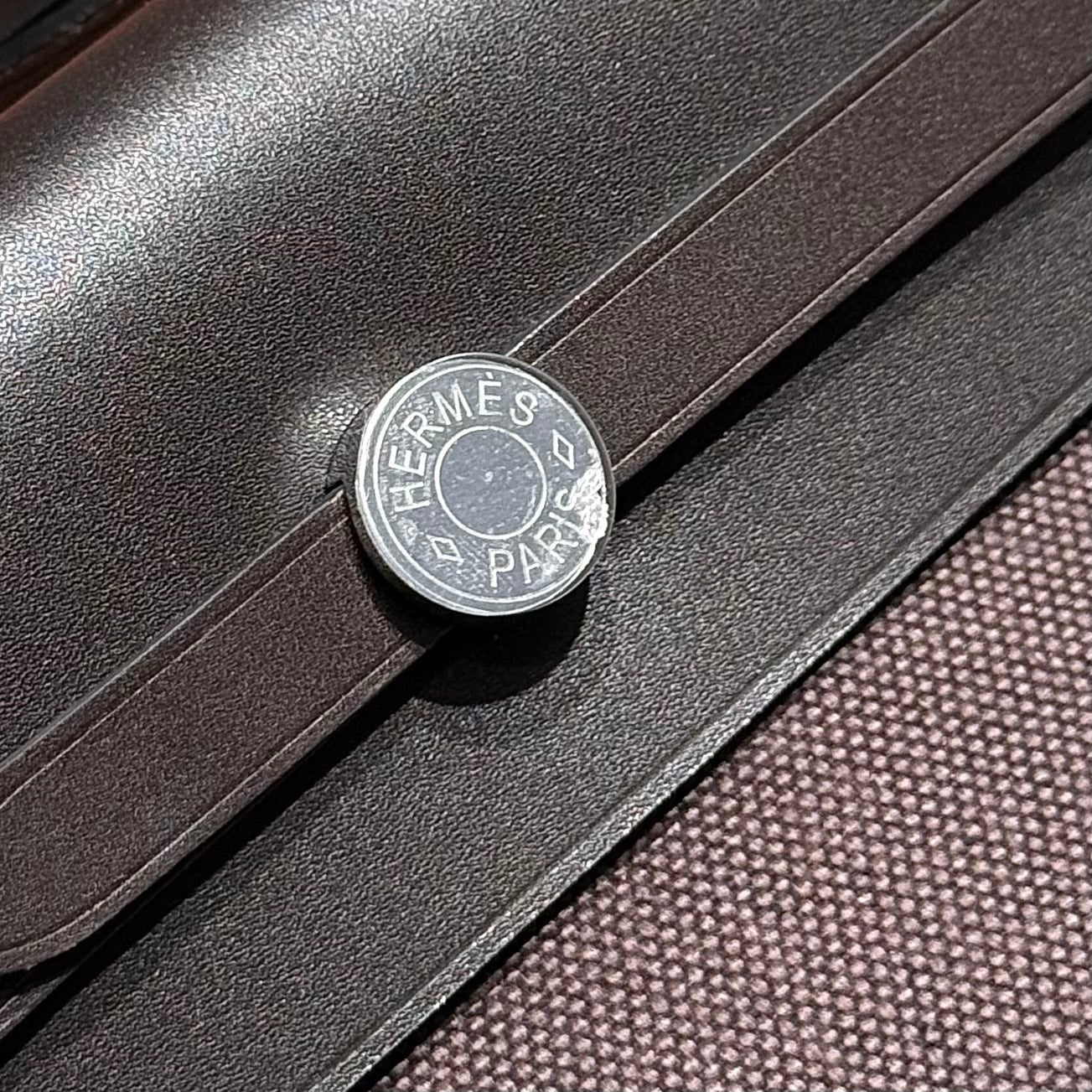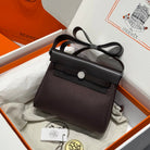 HM Mini Herbag Silver Buckle 20 Dark Brown Canvas and Hunter Cowhide 243305