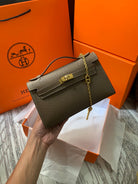 HM KELLY MINI POCHETTE 22 ASH BROWN EPSOM