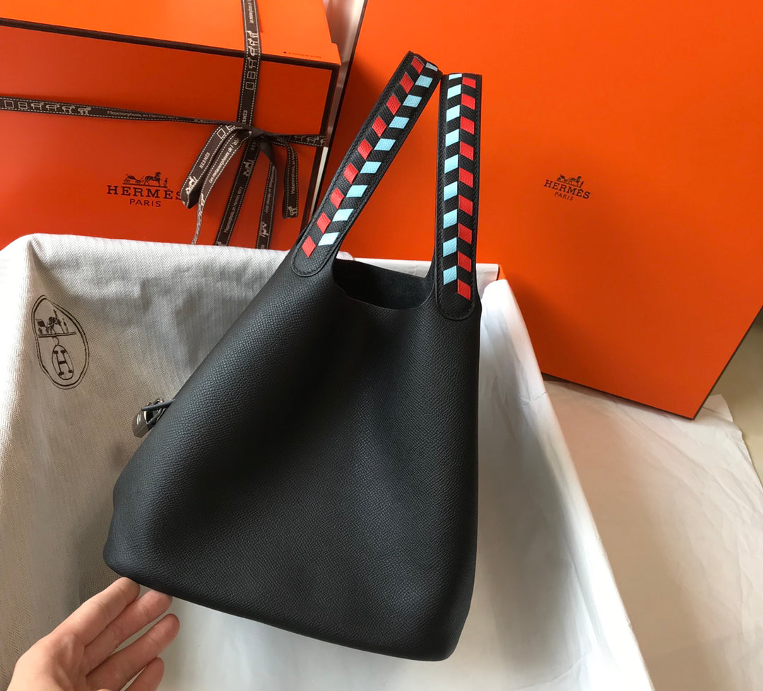 HM PICOTIN LOCK 22 BLACK EPSOM WITH BRAID STRAP