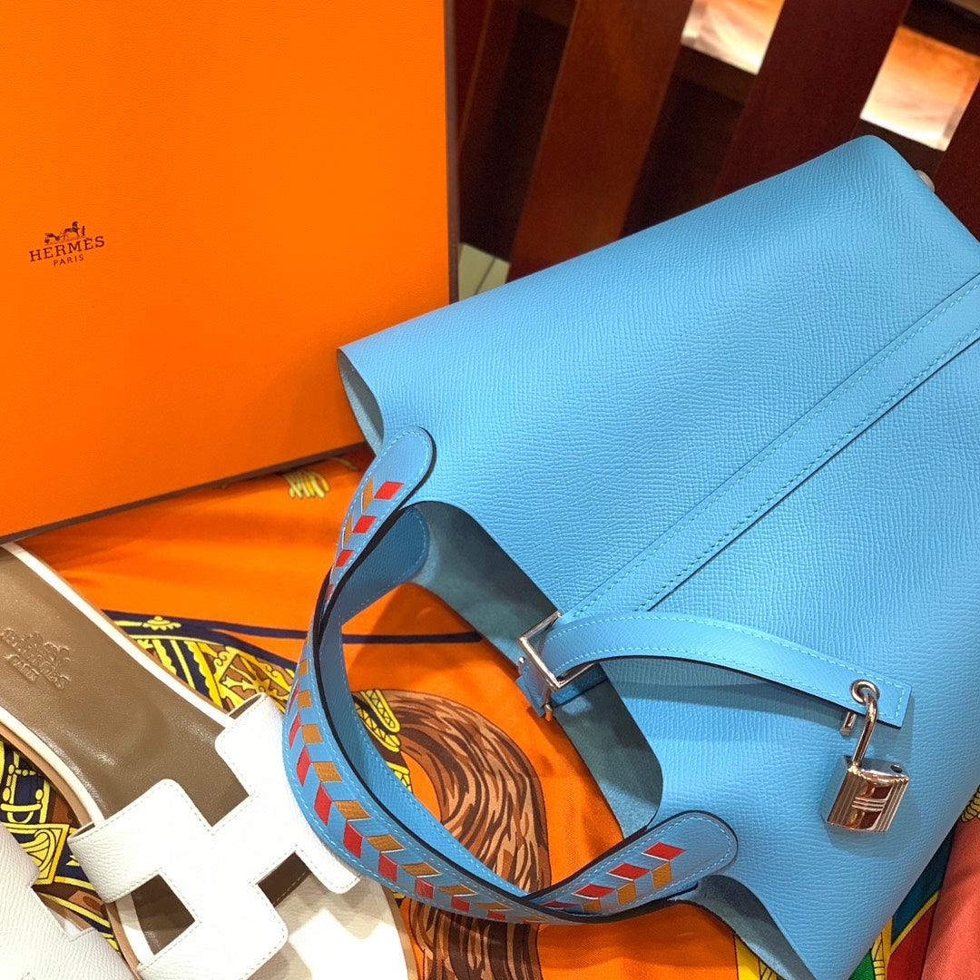 HM PICOTIN LOCK 22 SKY EPSOM LEATHER WITH BRAID STRAP