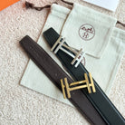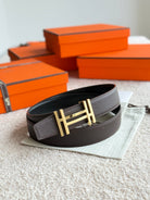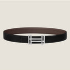 HM H au Carre Buckle Belt 32mm Black Chocolate Leather 187769