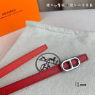 HM MAILLON H BELT BUCKLE & REVERSIBLE CHERRY RED LEATHER STRAP 13 MM SILVER HARDWARE