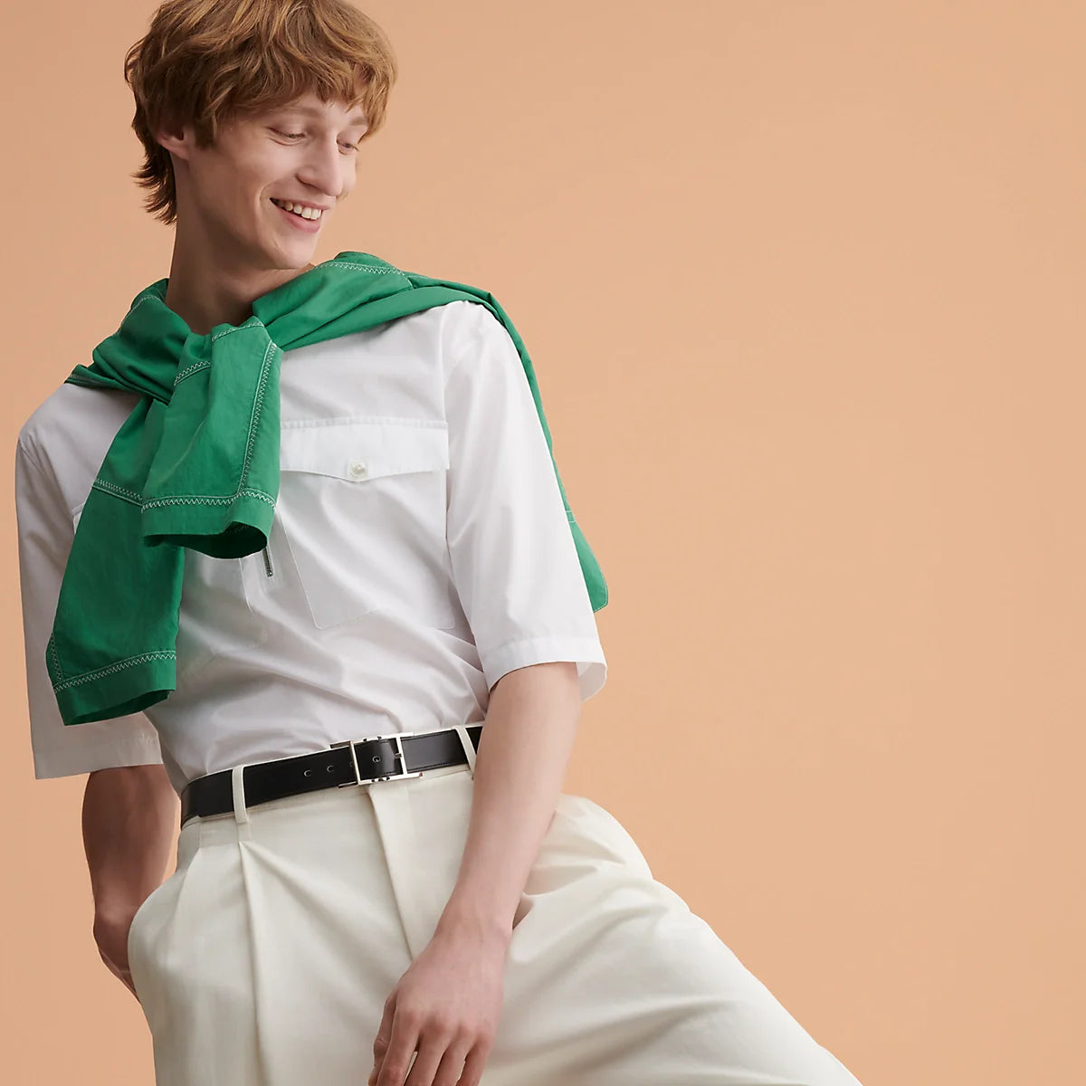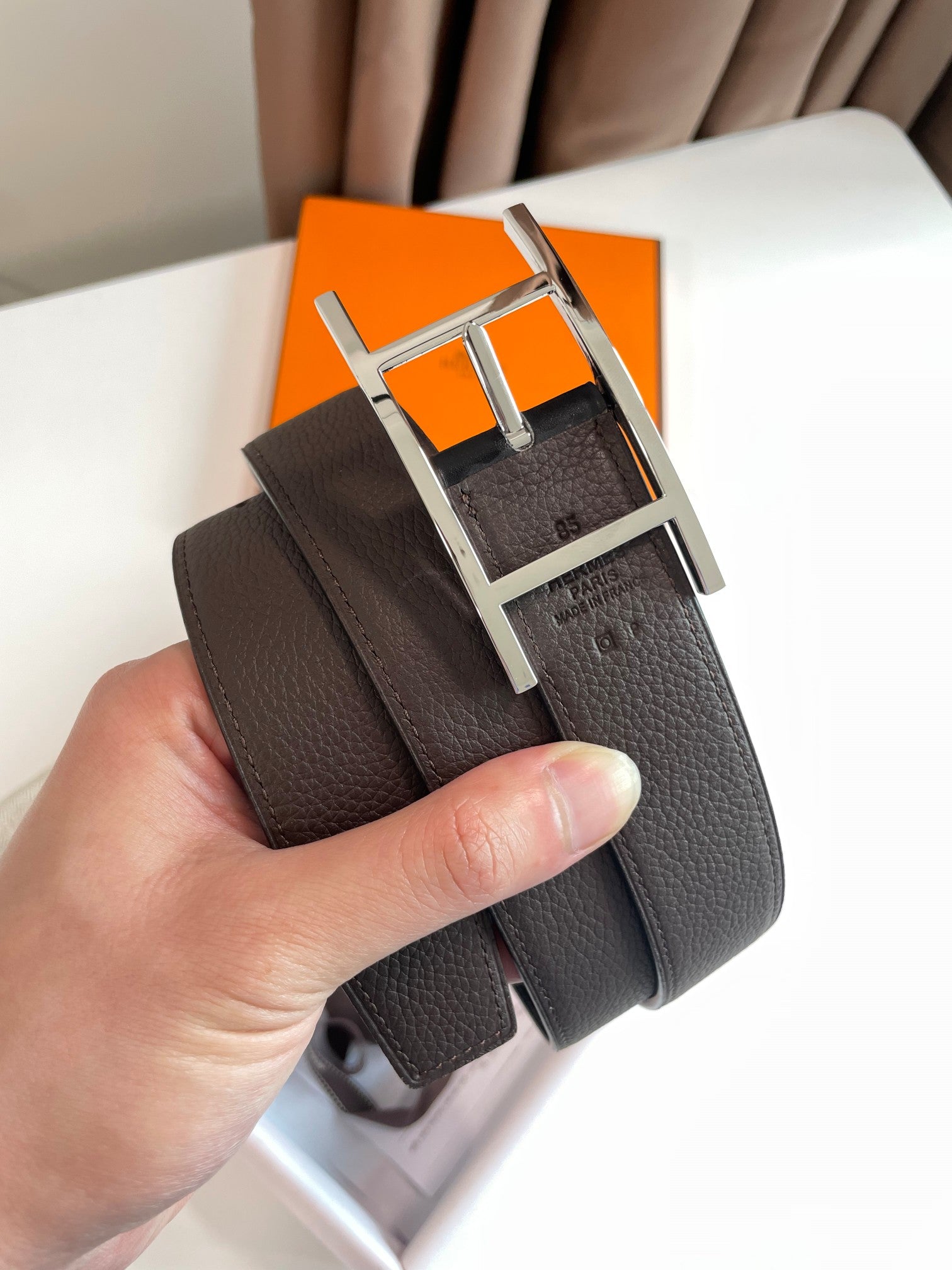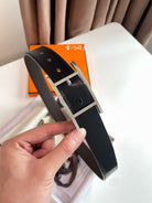 HM Silver Quentin Reversible 32mm Belt Black Chocolate Leather 187794