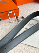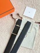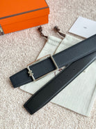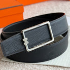 HM Silver Tube H Buckle Belt 38mm Black Leather 187780