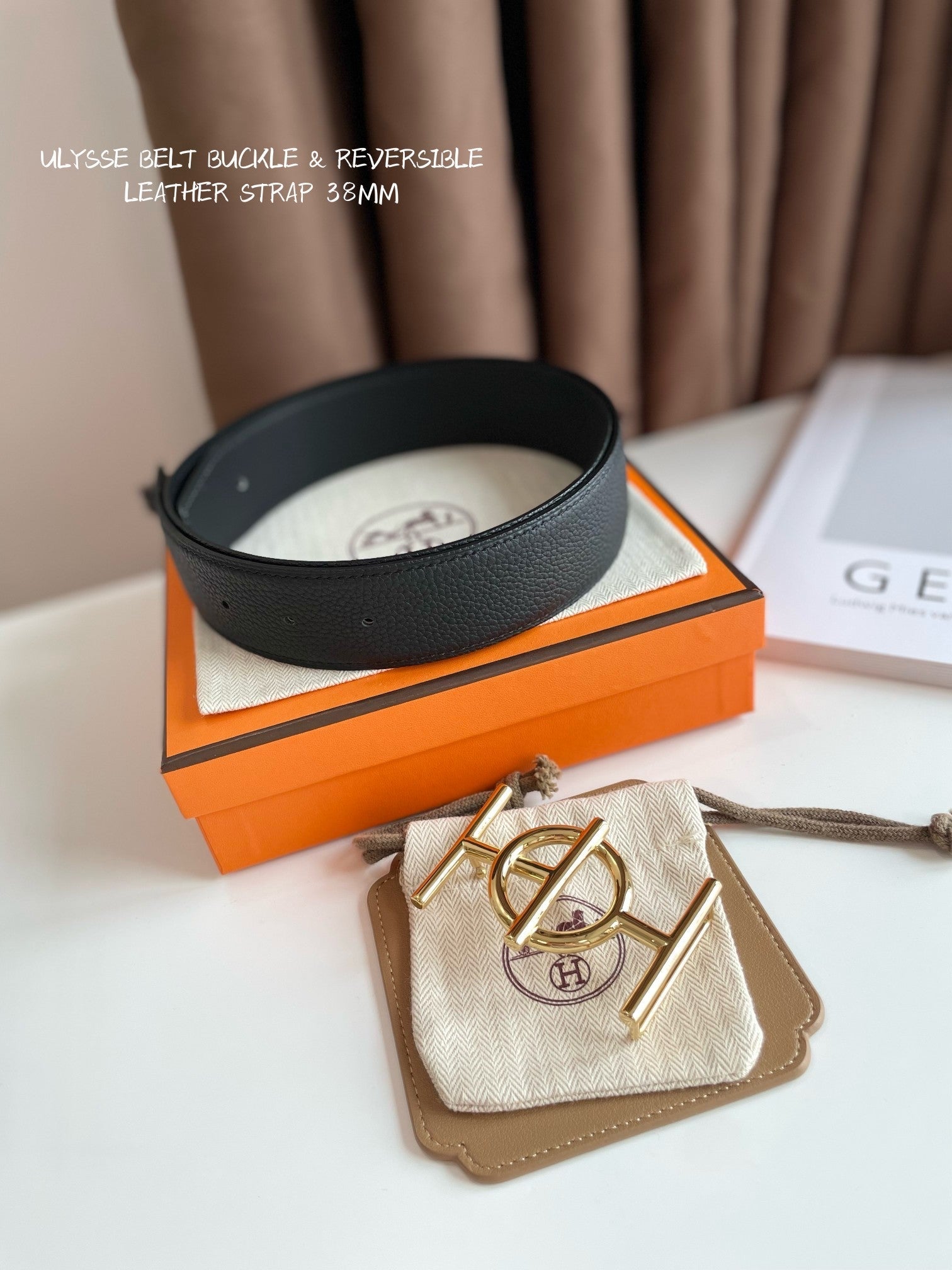 ULYSSE BELT BUCKLE & REVERSIBLE BLACK LEATHER STRAP 38MM GOLD HARDWARE