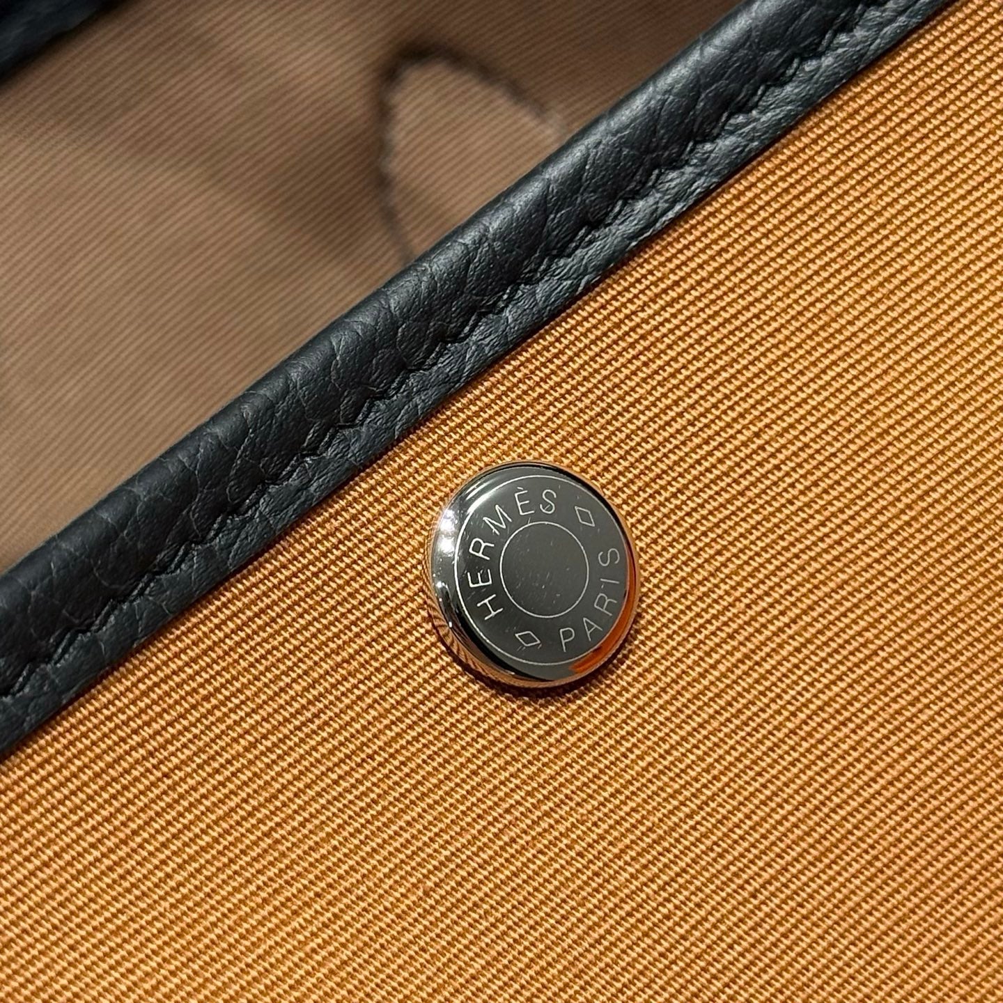 HM Garden Party 30cm Bag Black Togo Brown Canvas