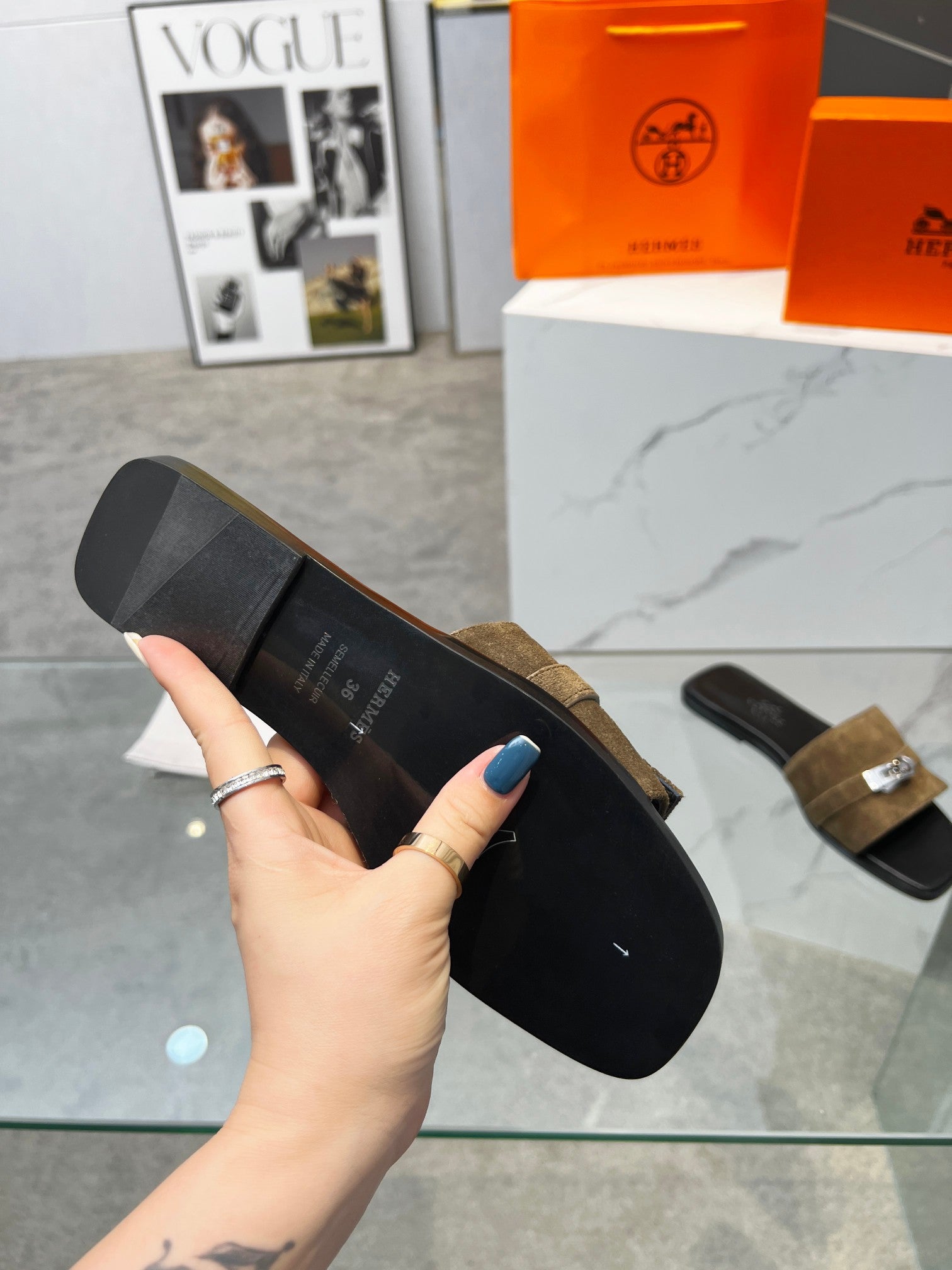 - Material: Suede, Calfskin