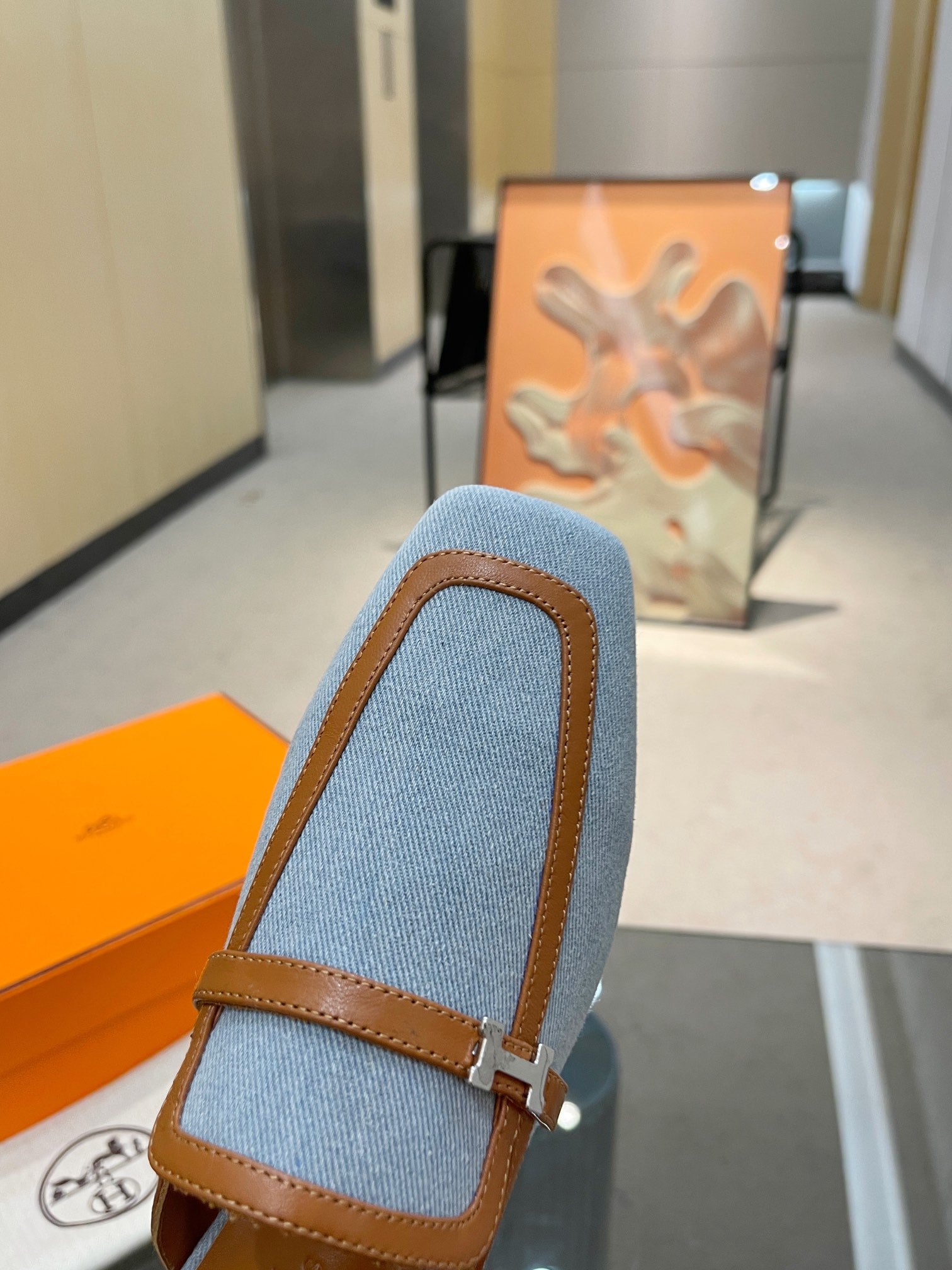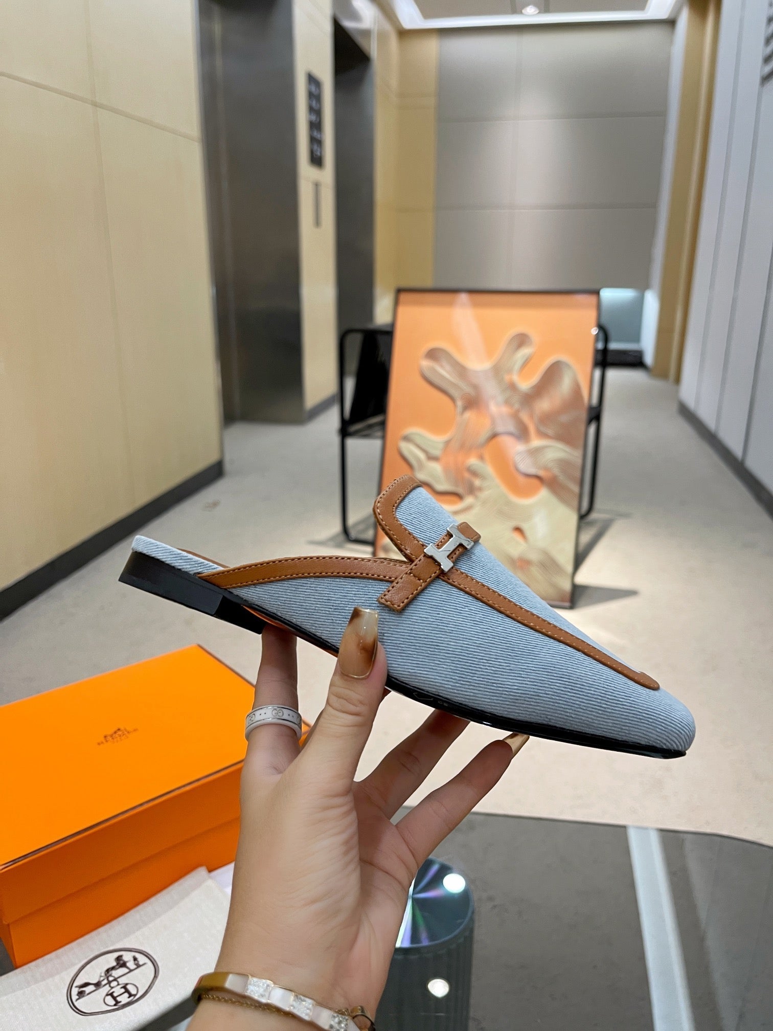 GROUPIE MULE TAWNY MIX SKY LAMBSKIN