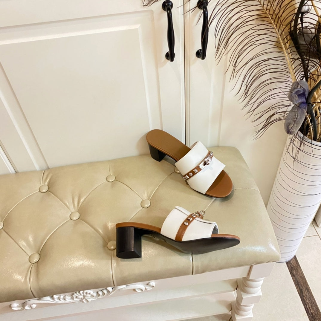 HM Giulia 50 Sandal White Bronw Calfskin