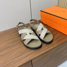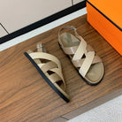 HM Heracles Sandals Etoupe Beige Frabic Calfskin 294069