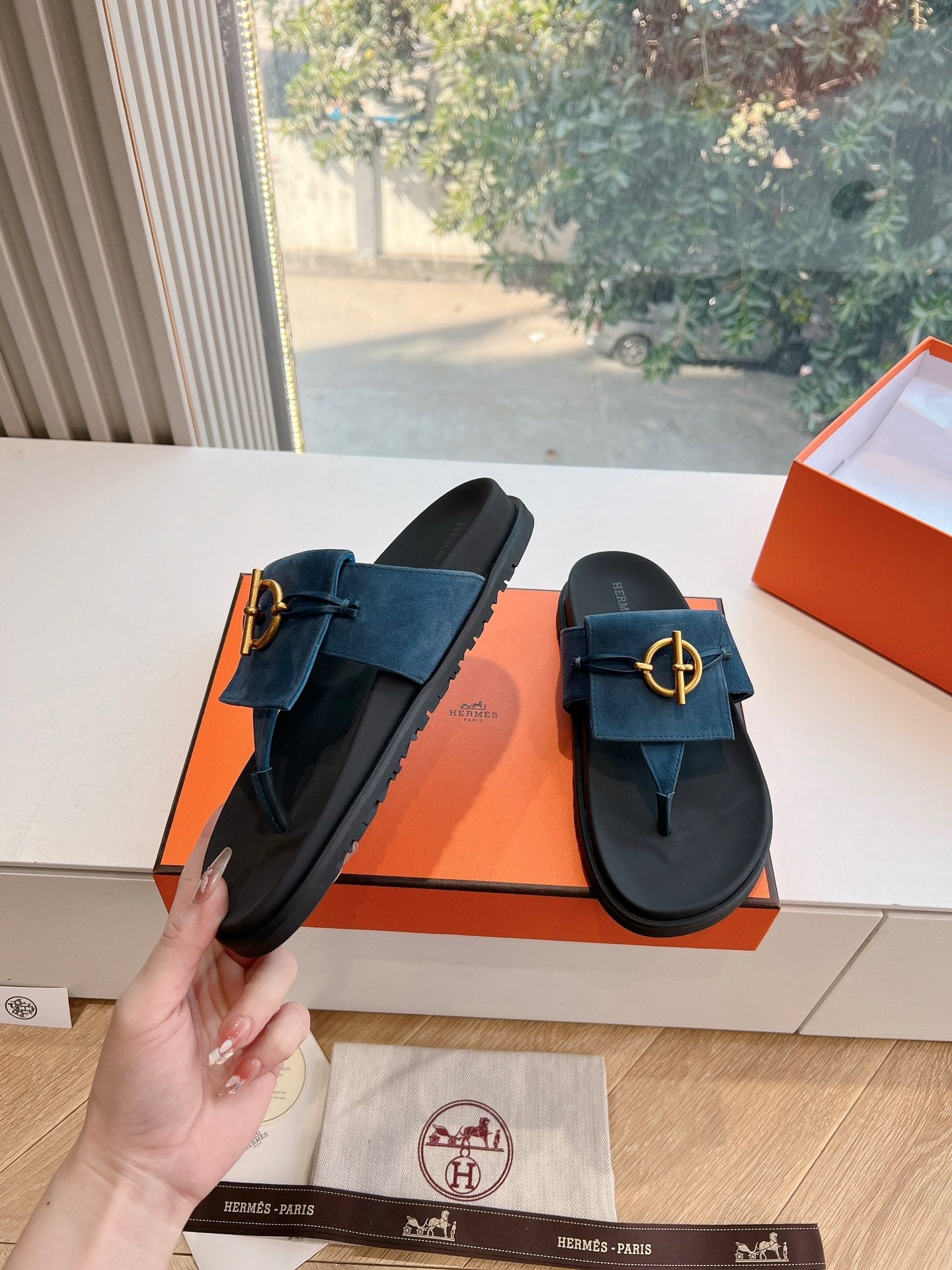 HM Joyce Sandals Black Blue Suede Lambskin 292600