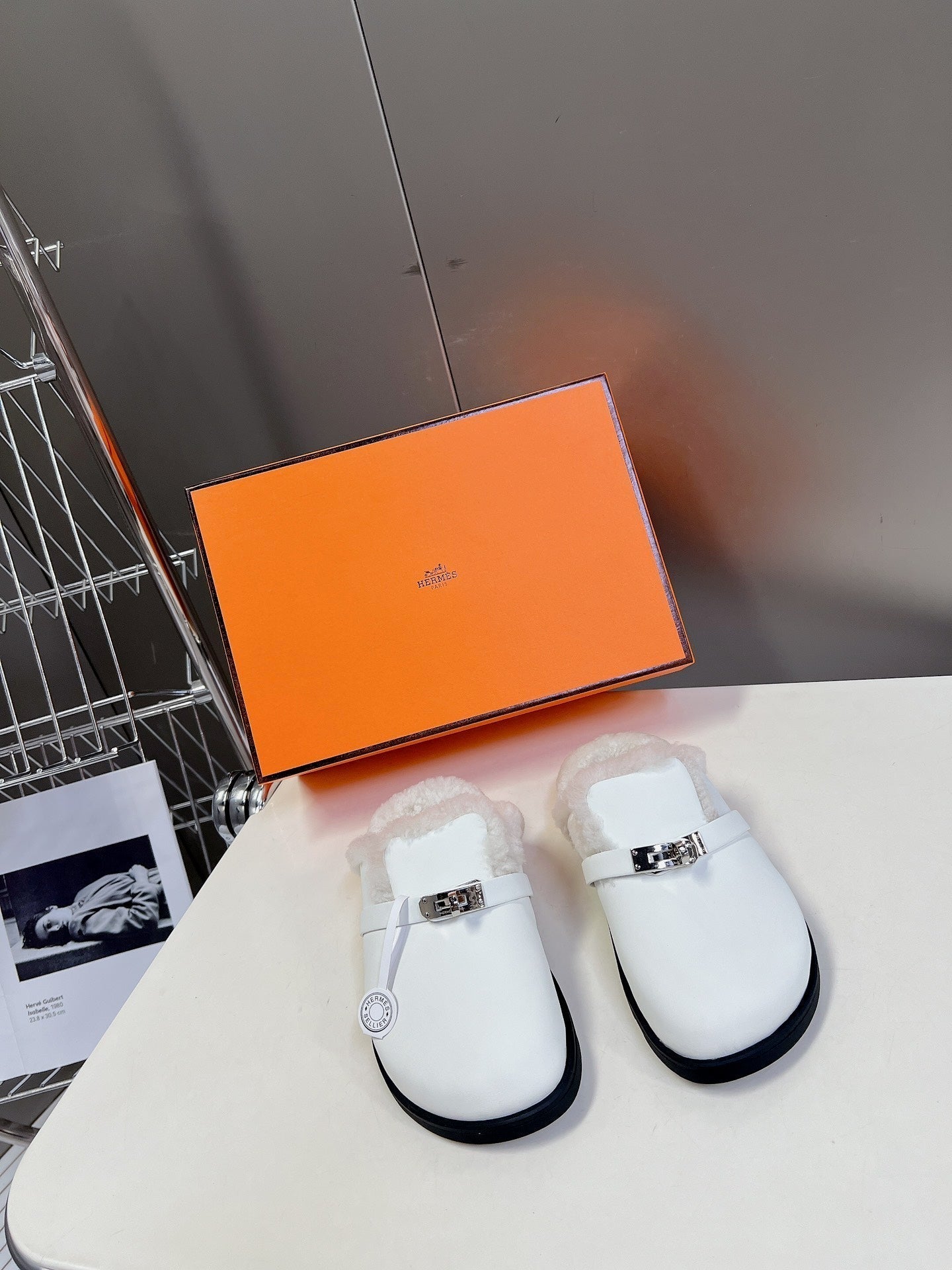 OZ Mule White Calfskin Shearling