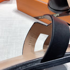 • Material: Sandal in Clafskin with straight cut edges, "H" cut-out detail and thin ankle strap.