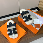 HM Chypre Sandal Black Mix White Wool And Cowhide Lining 984211