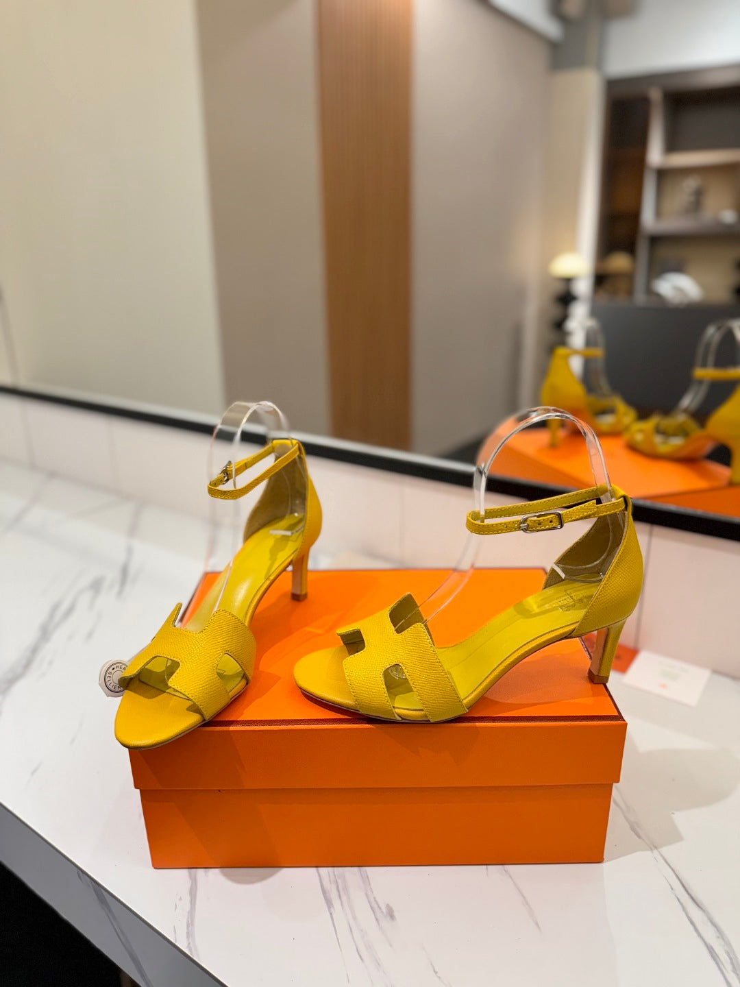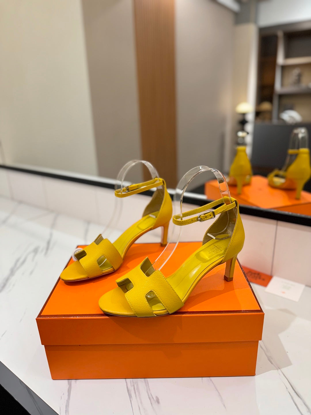 HM Joy 65mm Heeled Sandals Yellow Cowhide 294906