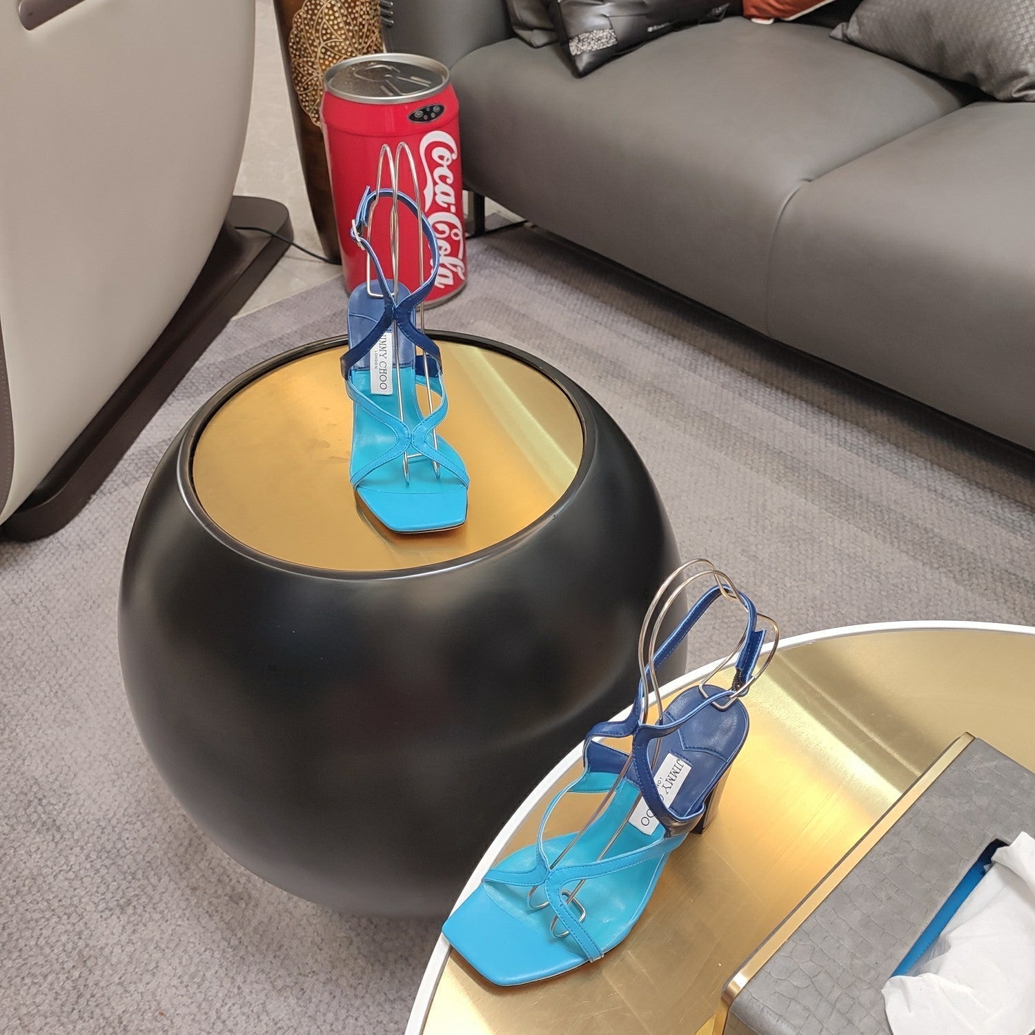 Jimmy 25 Azie Colorblock Sandal 11CM NCS Blue Calfskin 240111