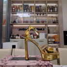 Jimmy 25 Platform Sandal Heels Gold Mirror TPU Material 240010