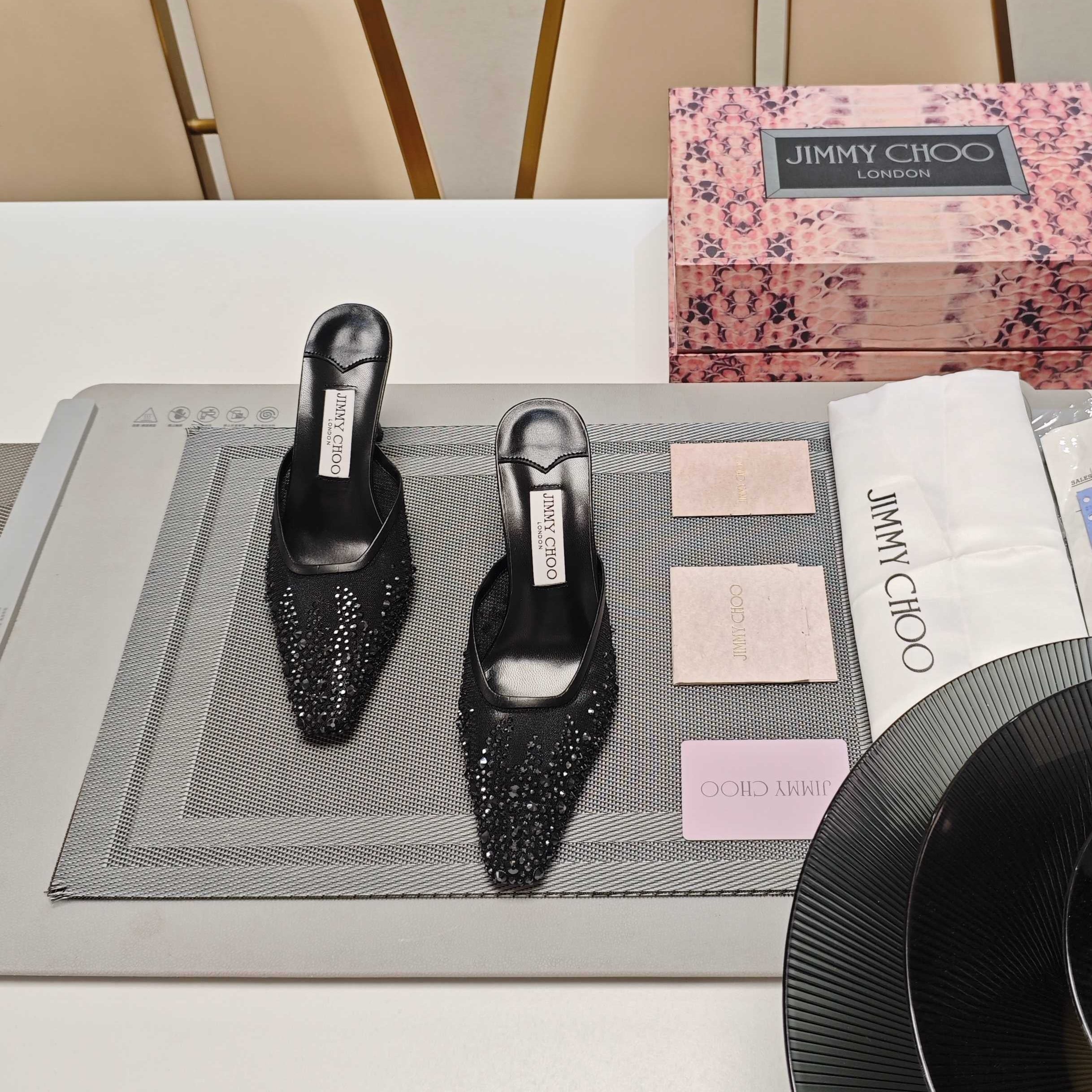 Jimmy 25 Vivi 100 Mule Black Mesh Gauze 240051
