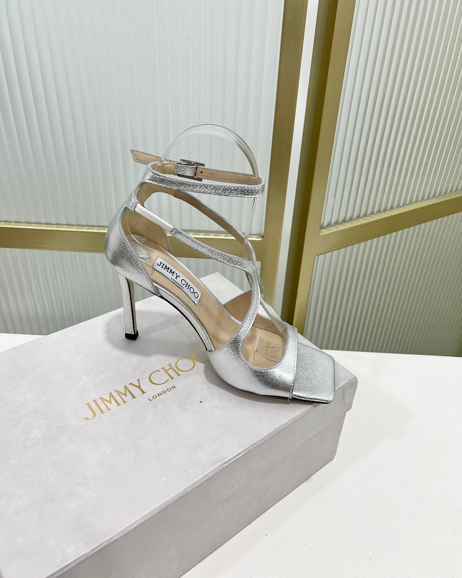 Jimmy Azia 95 In Silver Cowhide Sandals 587709