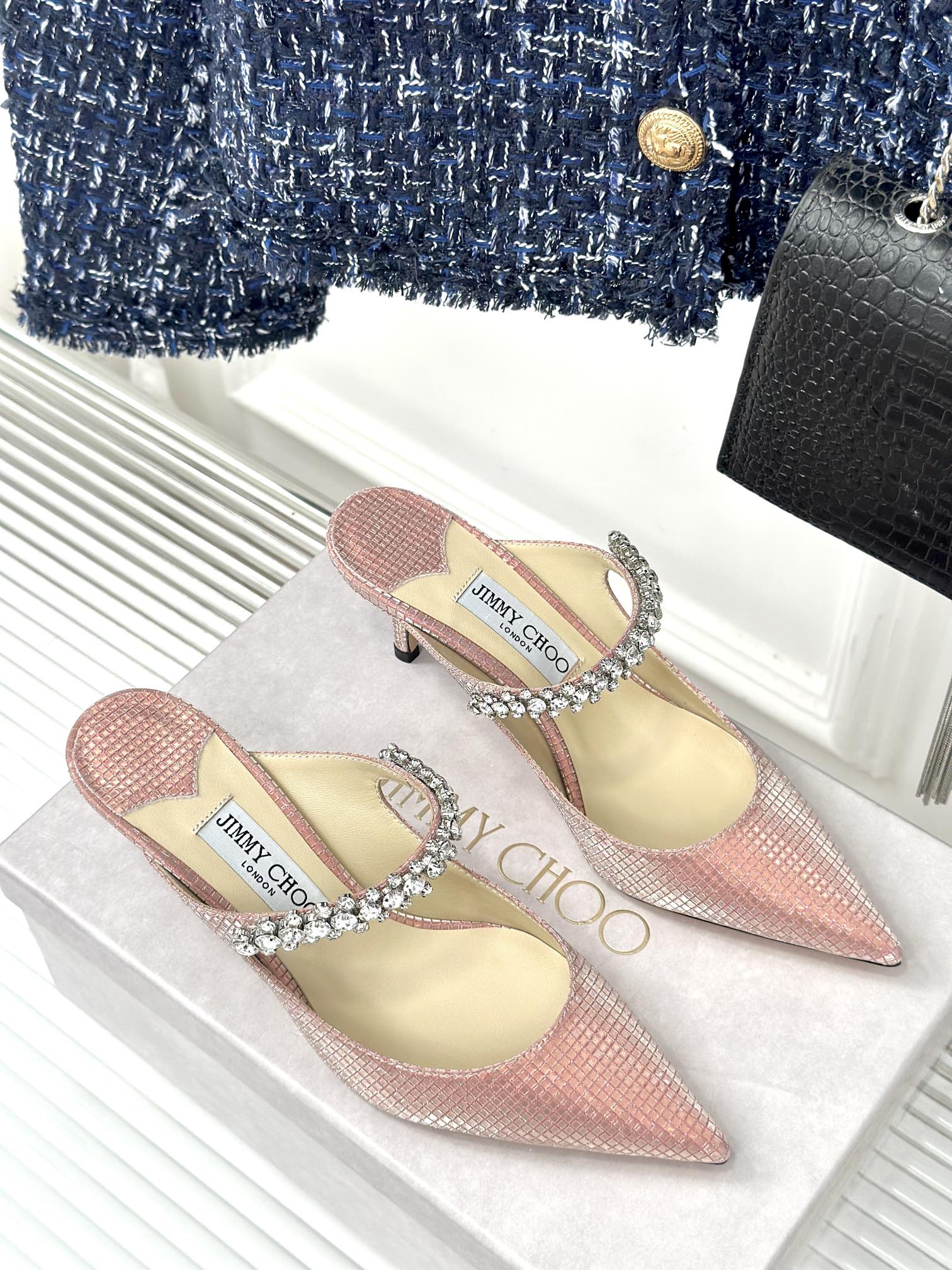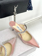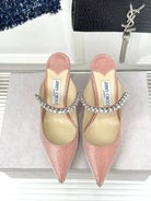 Jimmy Bing 65mm In Rose Pink Stone Studded Cowhide Mules 593198