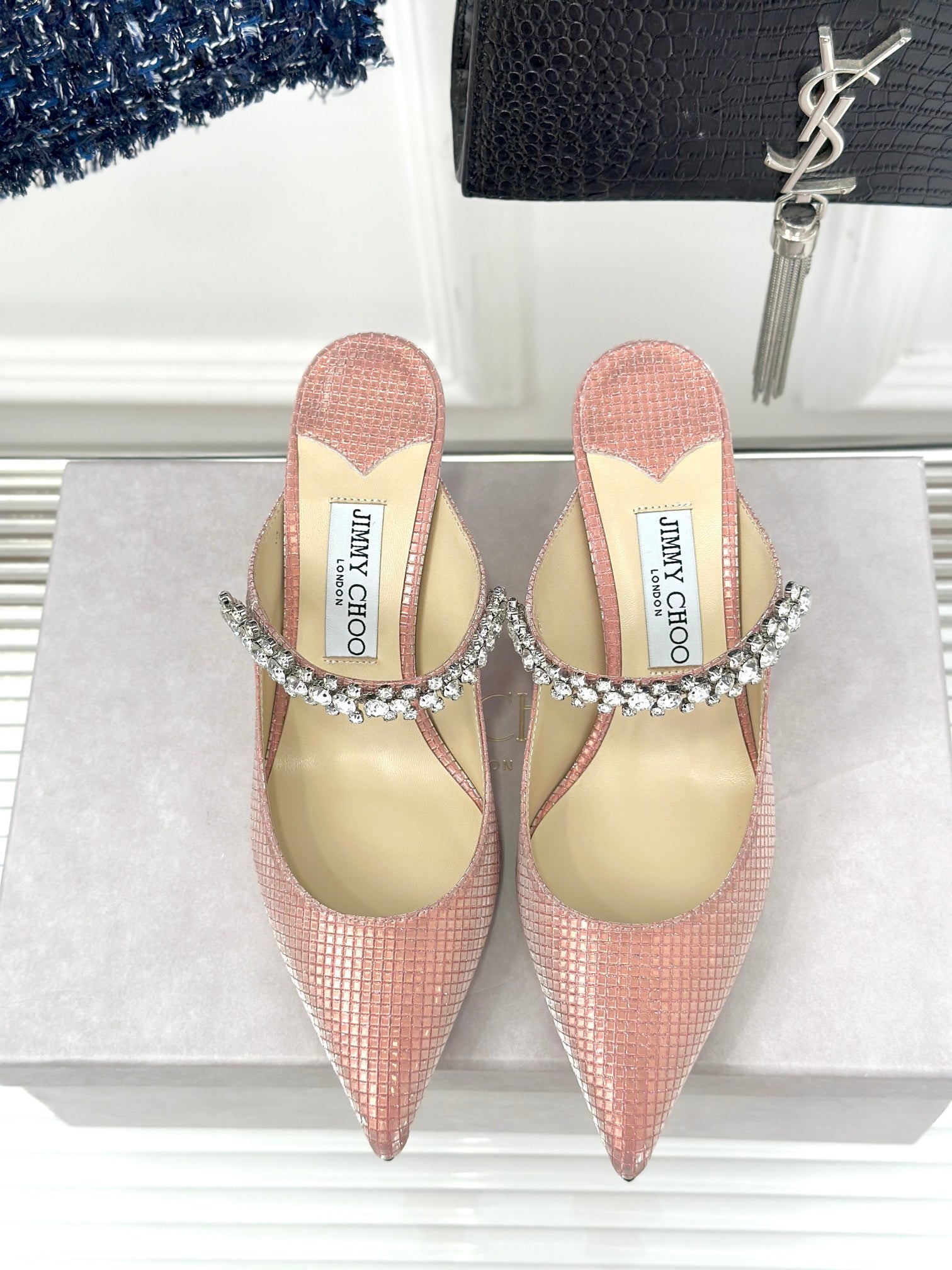 - Material: Stone Studded Cowhide, Lambskin