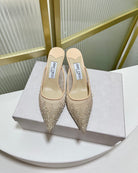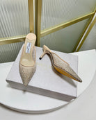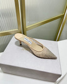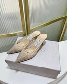 Jimmy Mule 65mm In Beige Mesh Fabric With Swarovski Crystal 597880