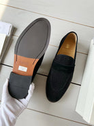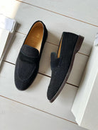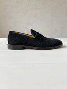 brunello woven black suede penny loafer
