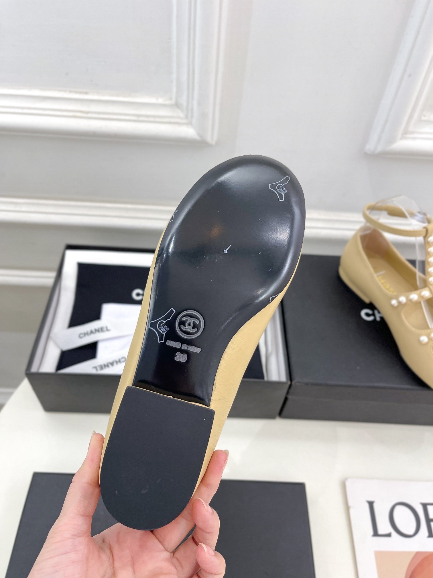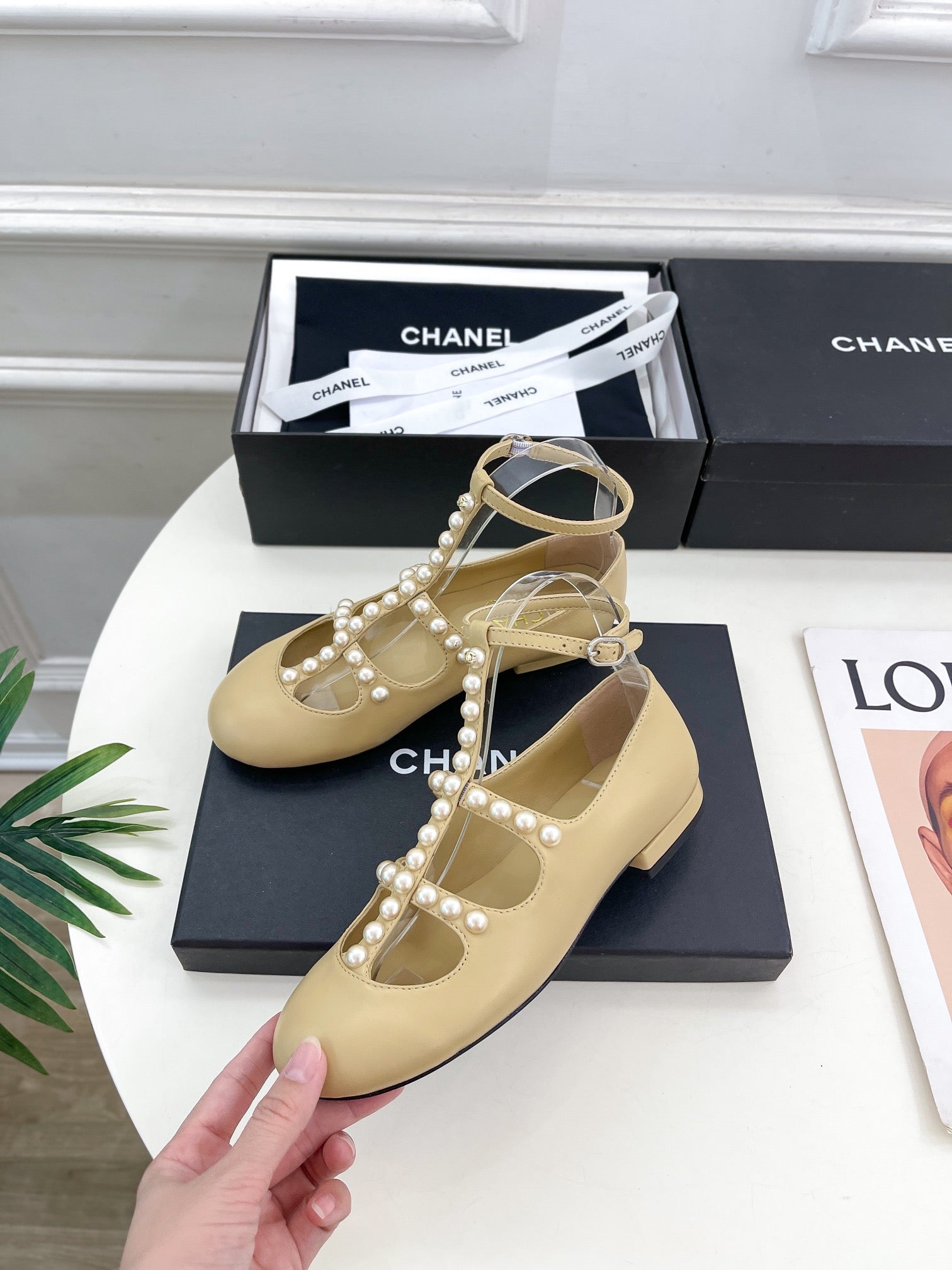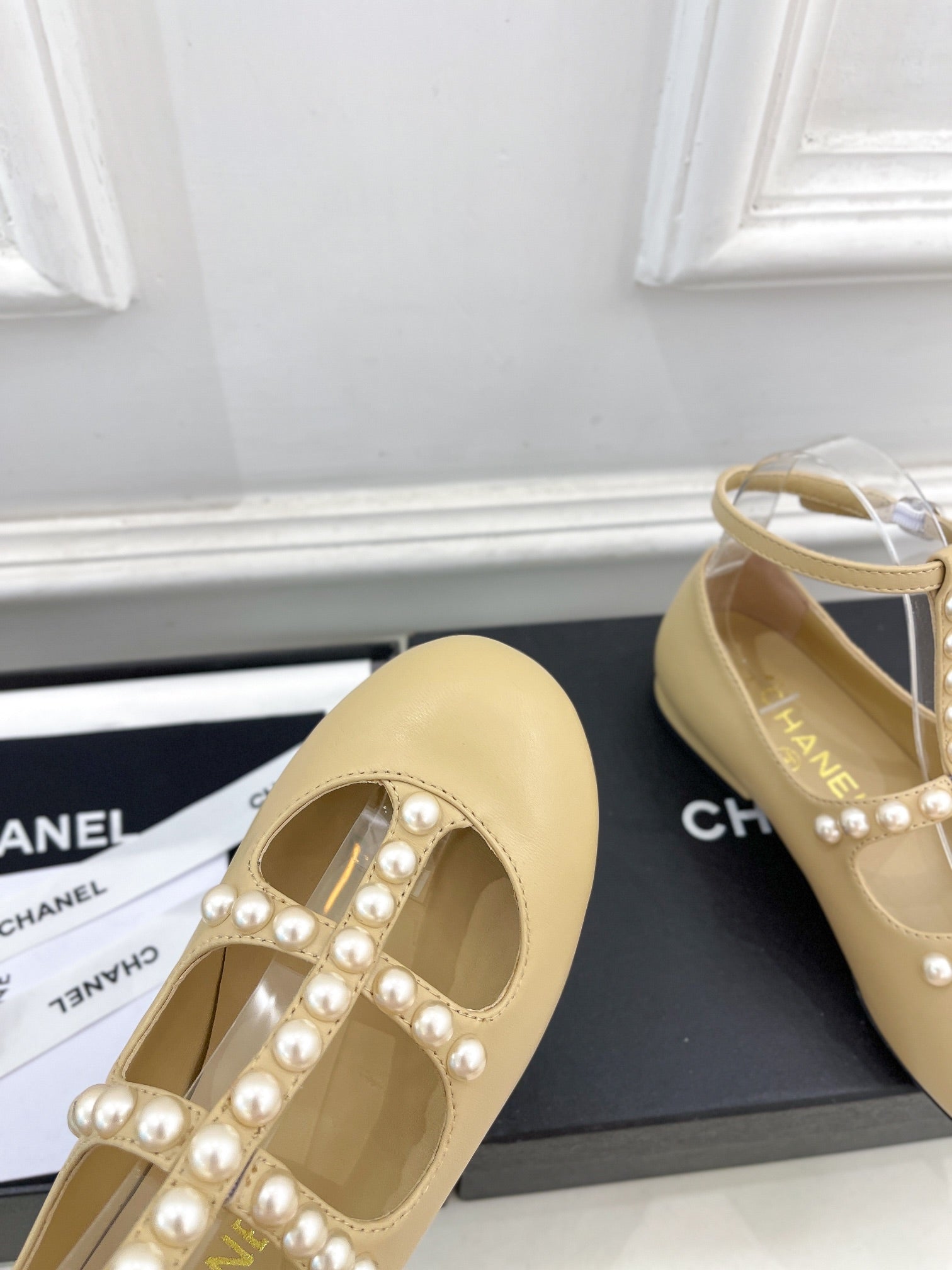 CC Mary Jane 10mm In Buff Yellow With Small Pearls Lambskin 948762