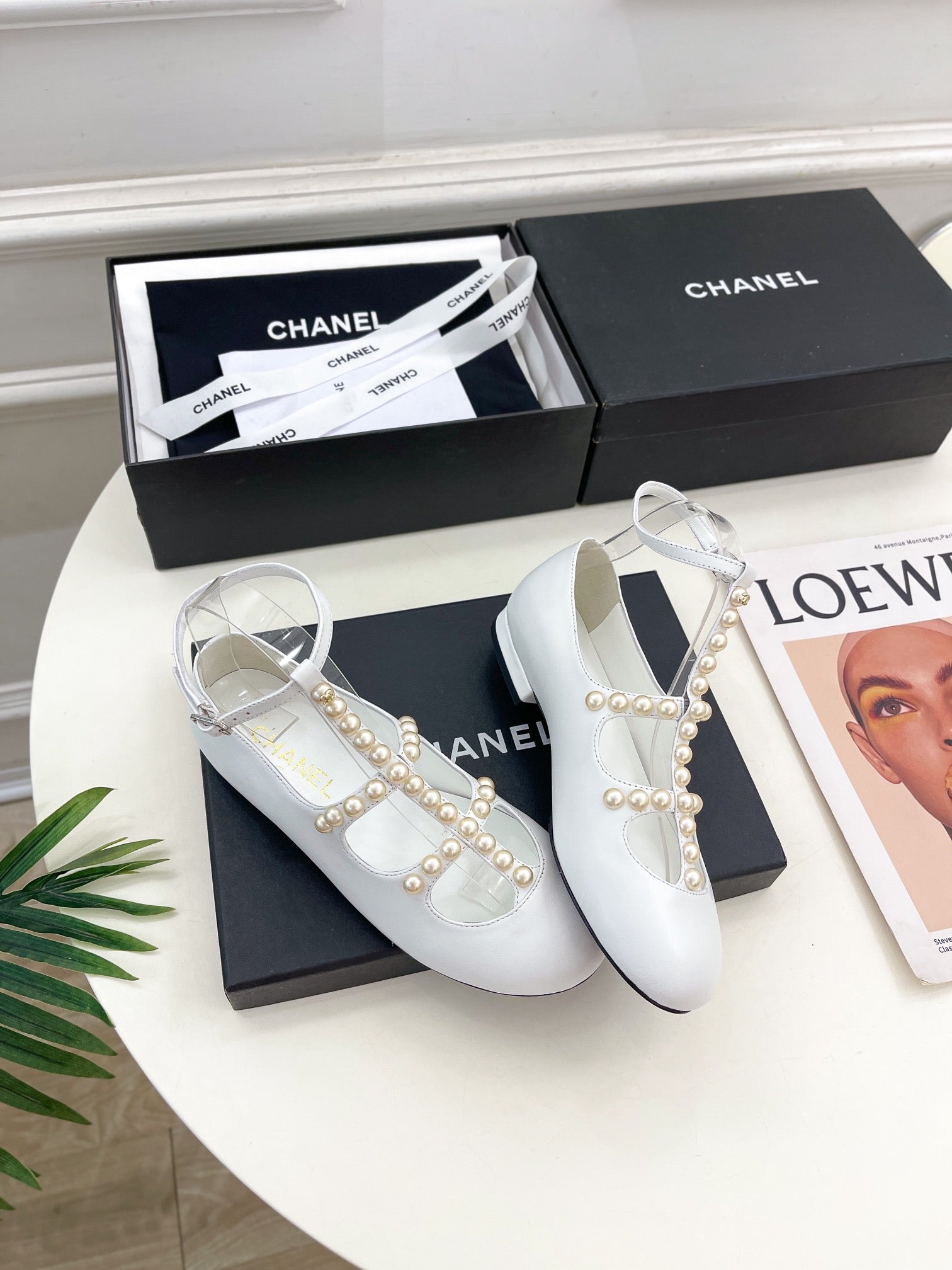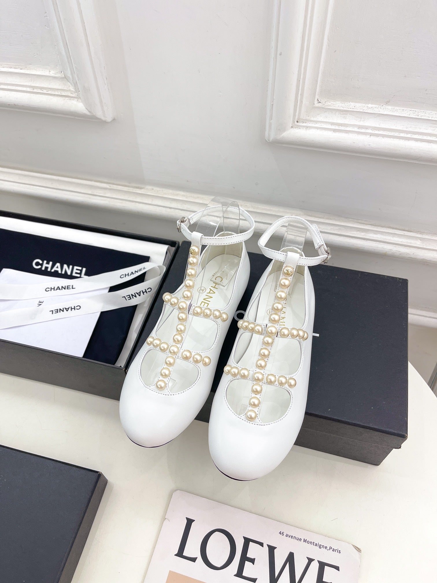 CC Mary Jane 10mm In White With Small Pearls Lambskin 948758