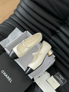CC MARY JANE SHOES IN WHITE MIX BLACK LAMBSKIN WITH GOLD HARDWARE