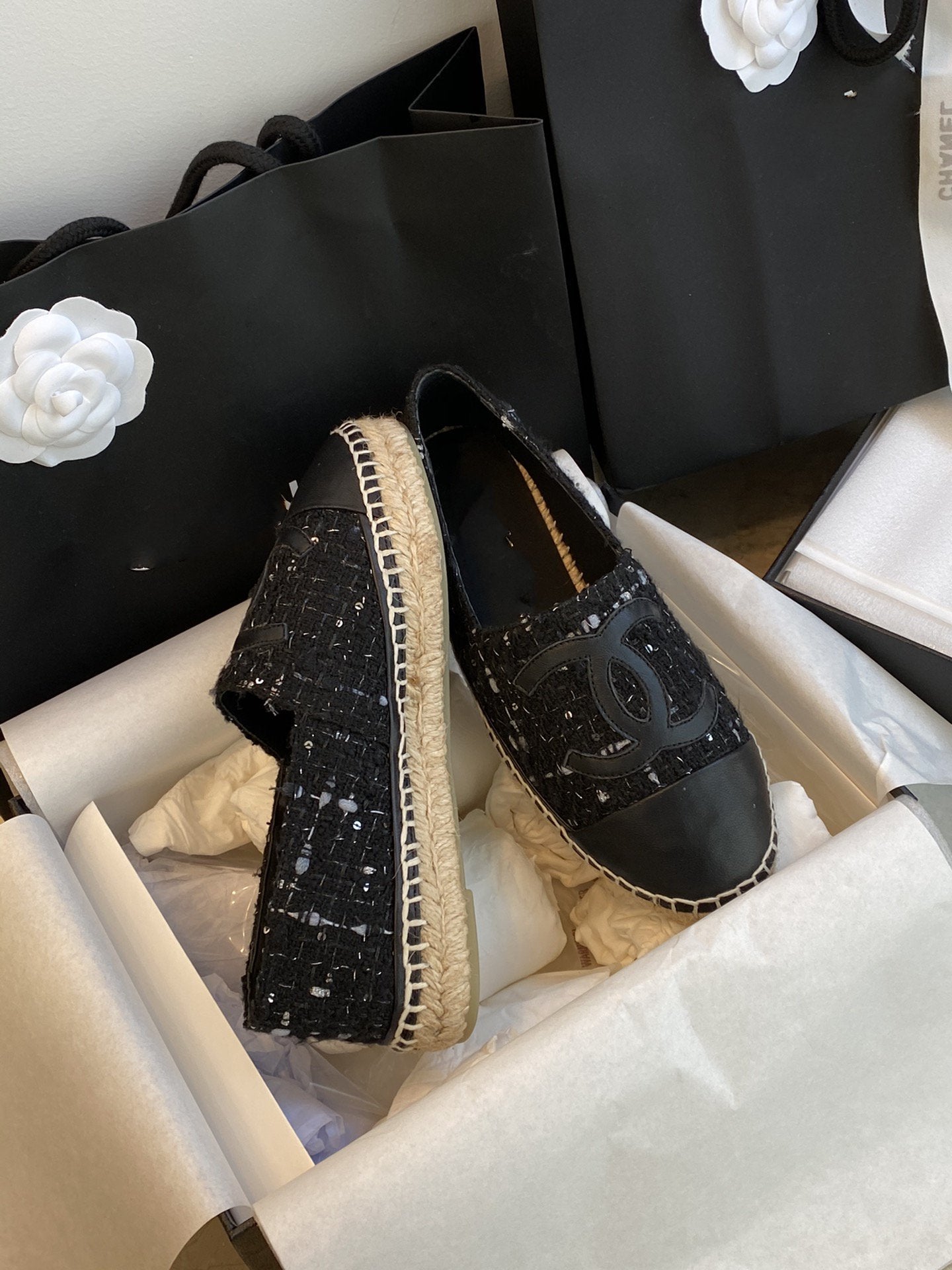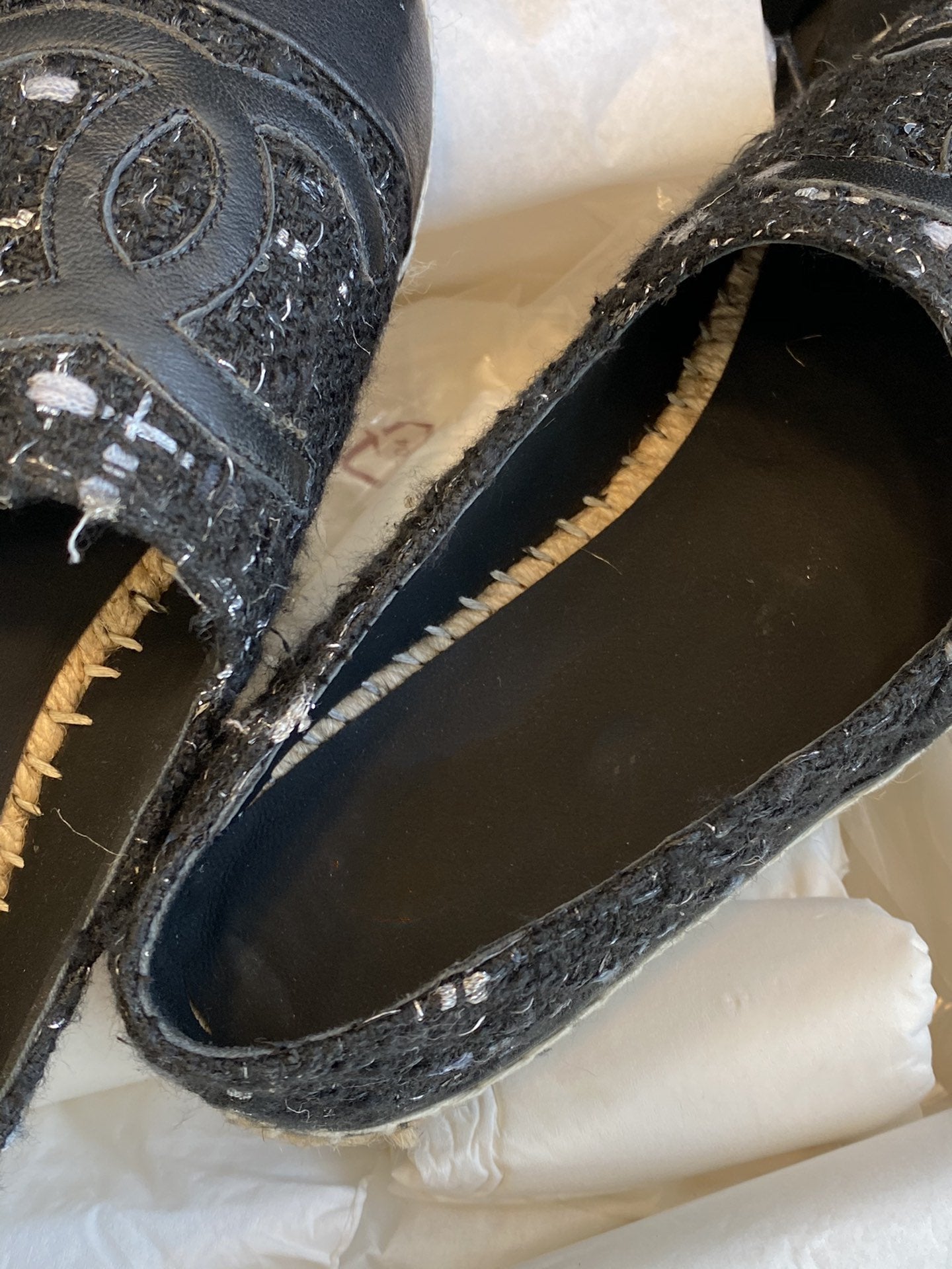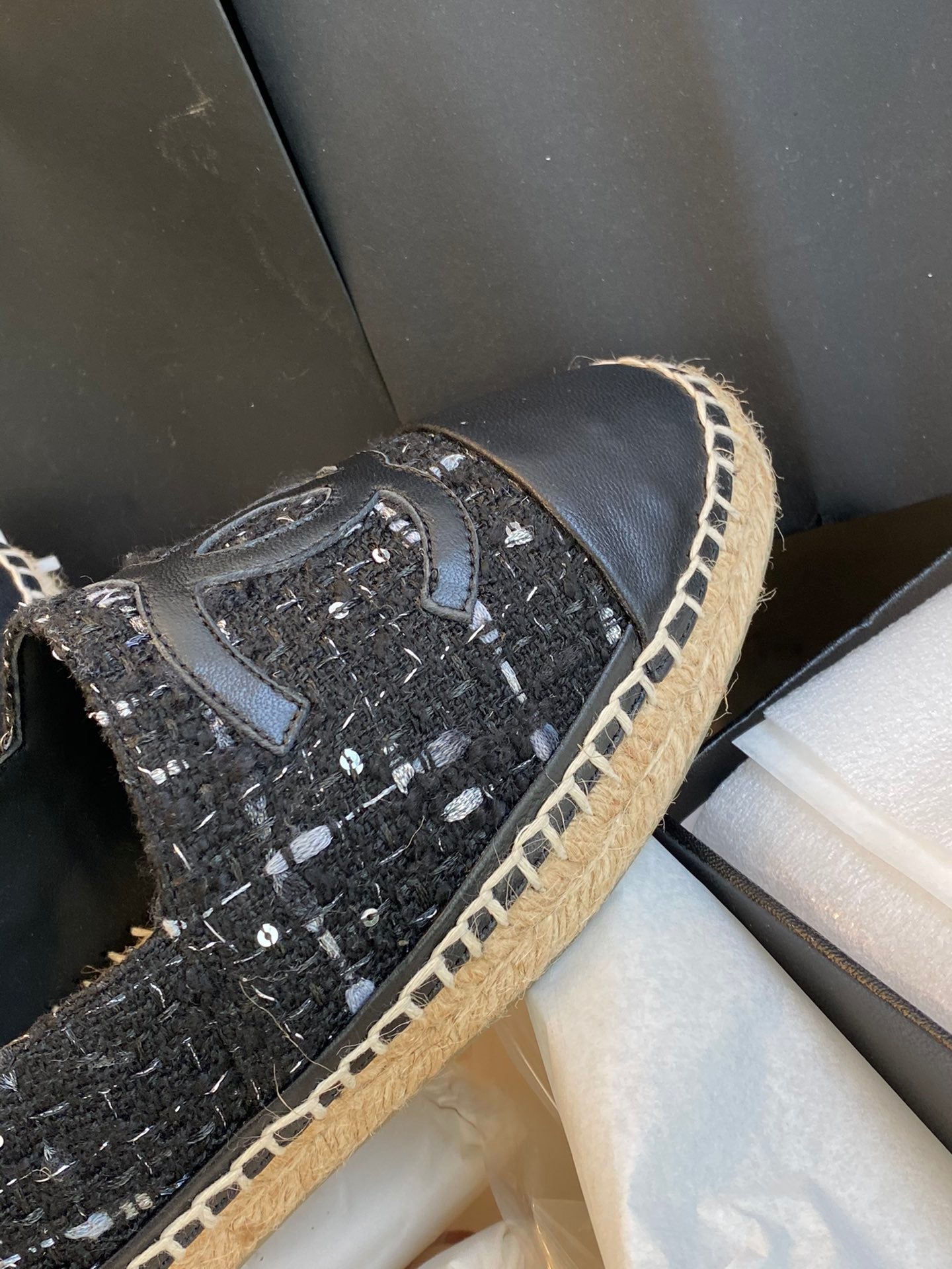 espadriles black white tweed black lambskin