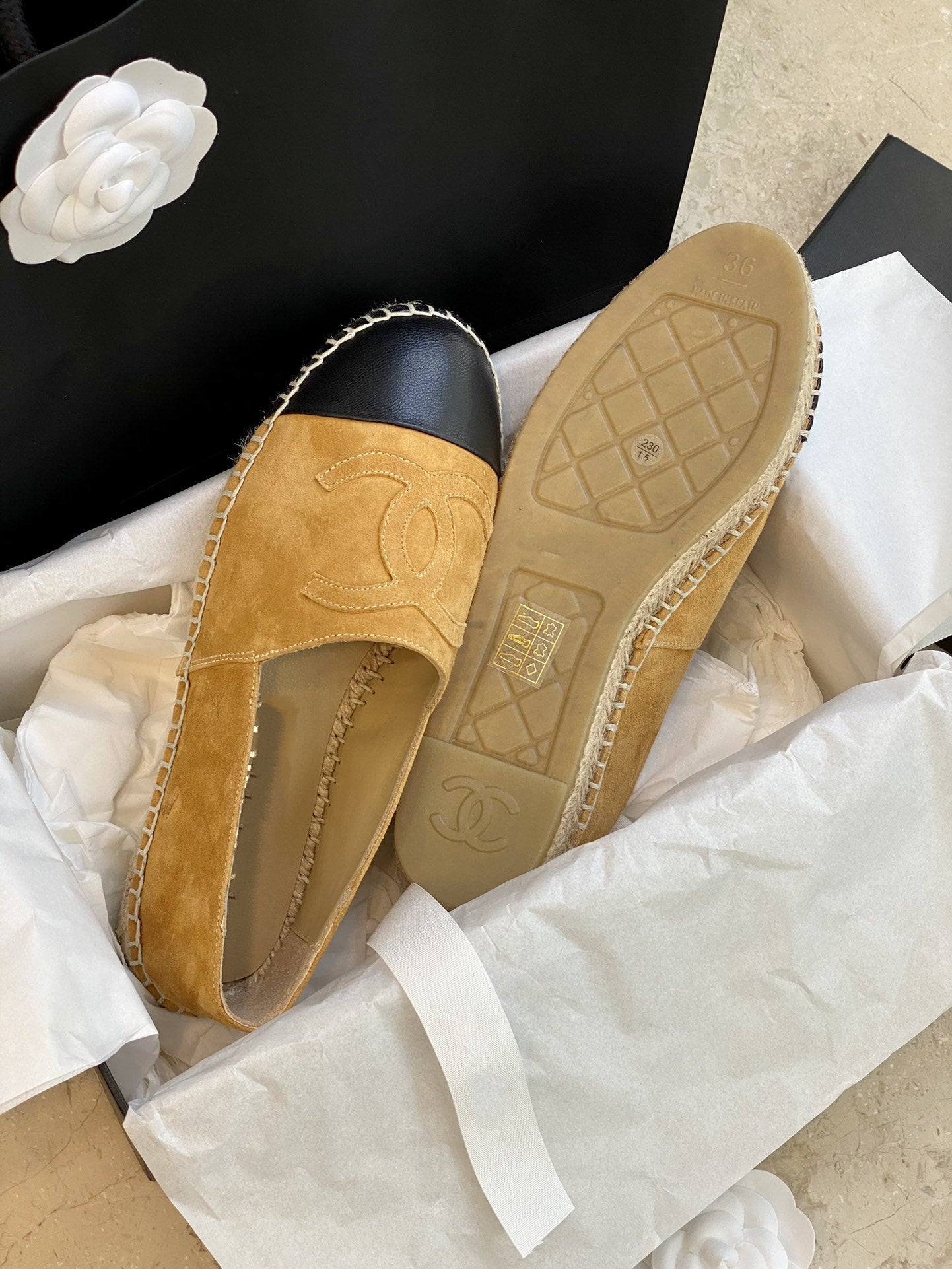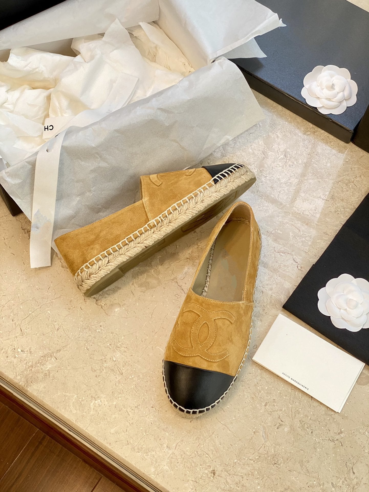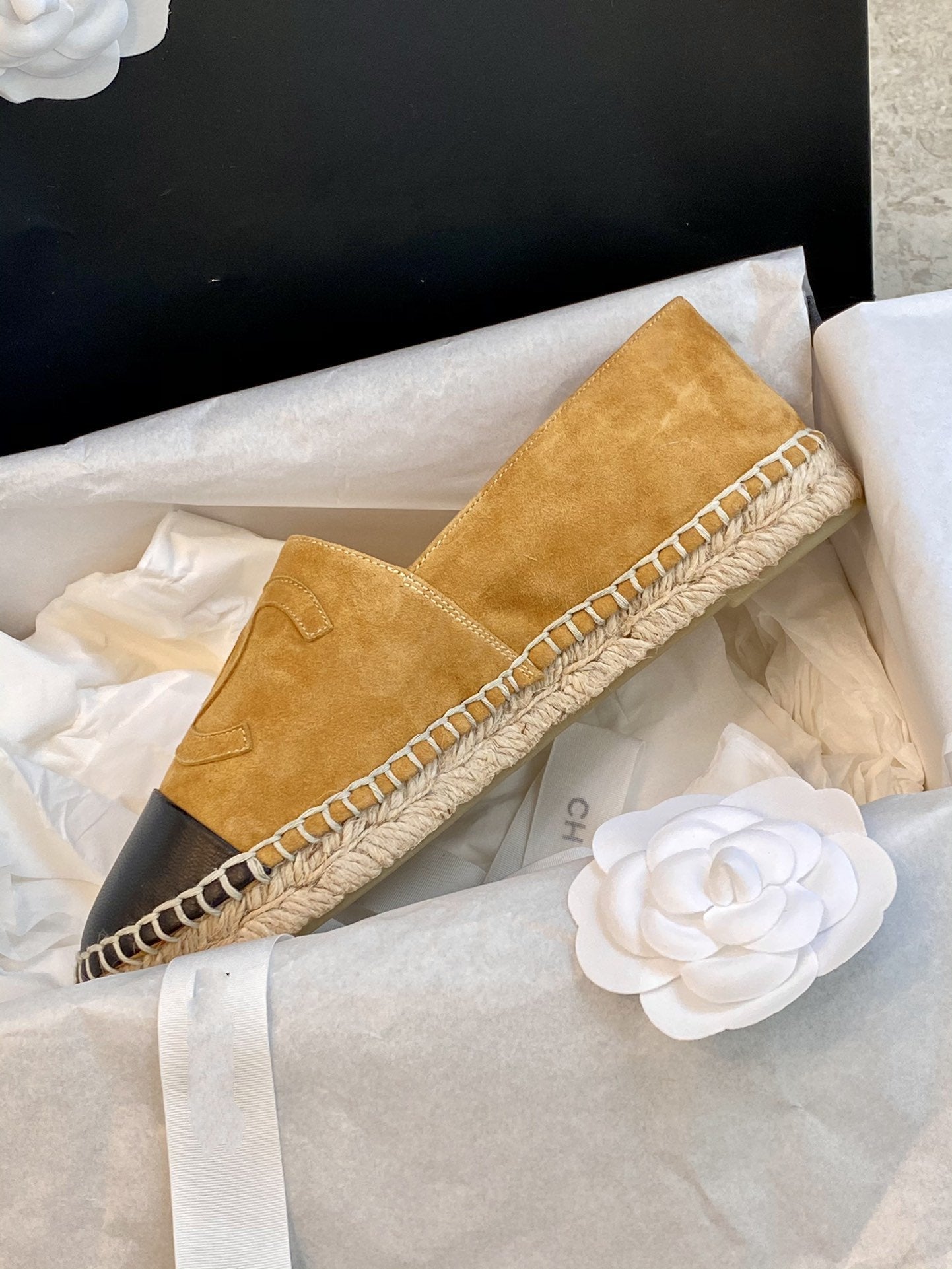 espadrilles dark beige suede black lambskin