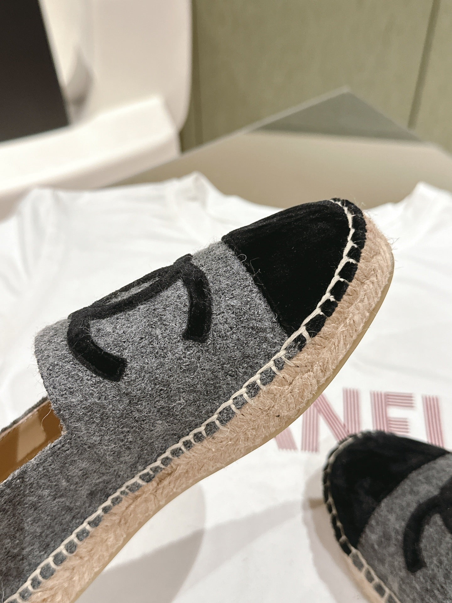 espadrilles dark grey cotton tweed black suede