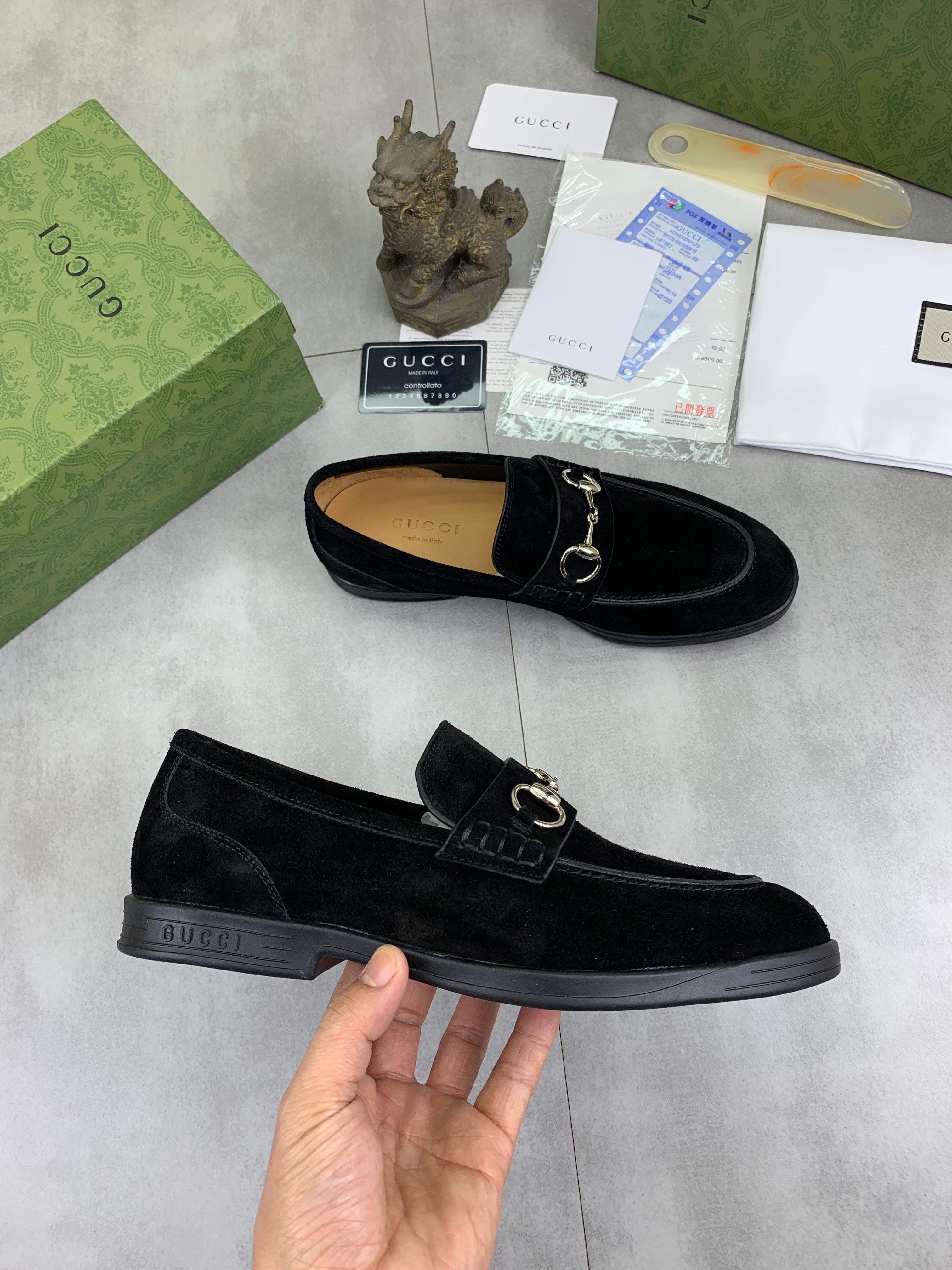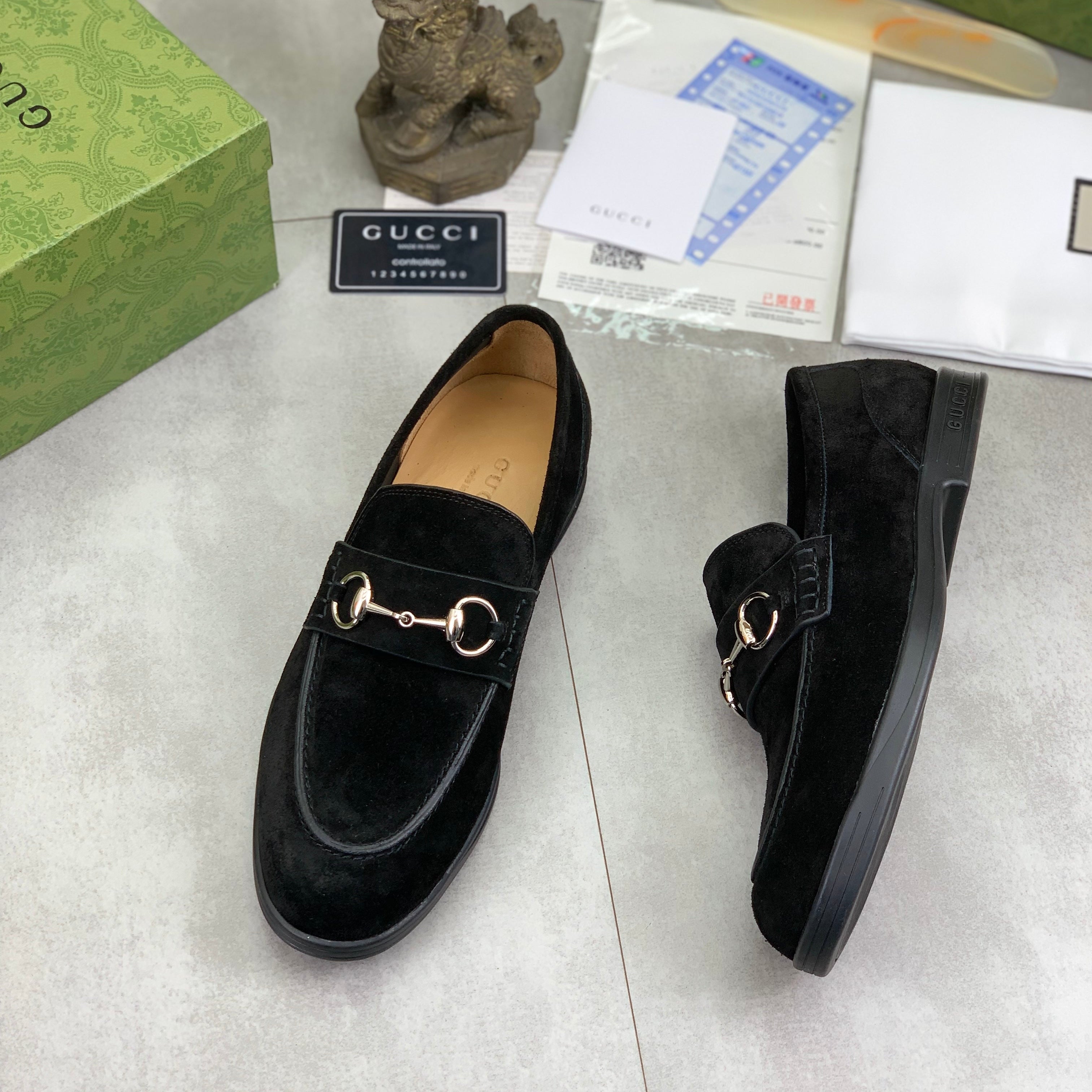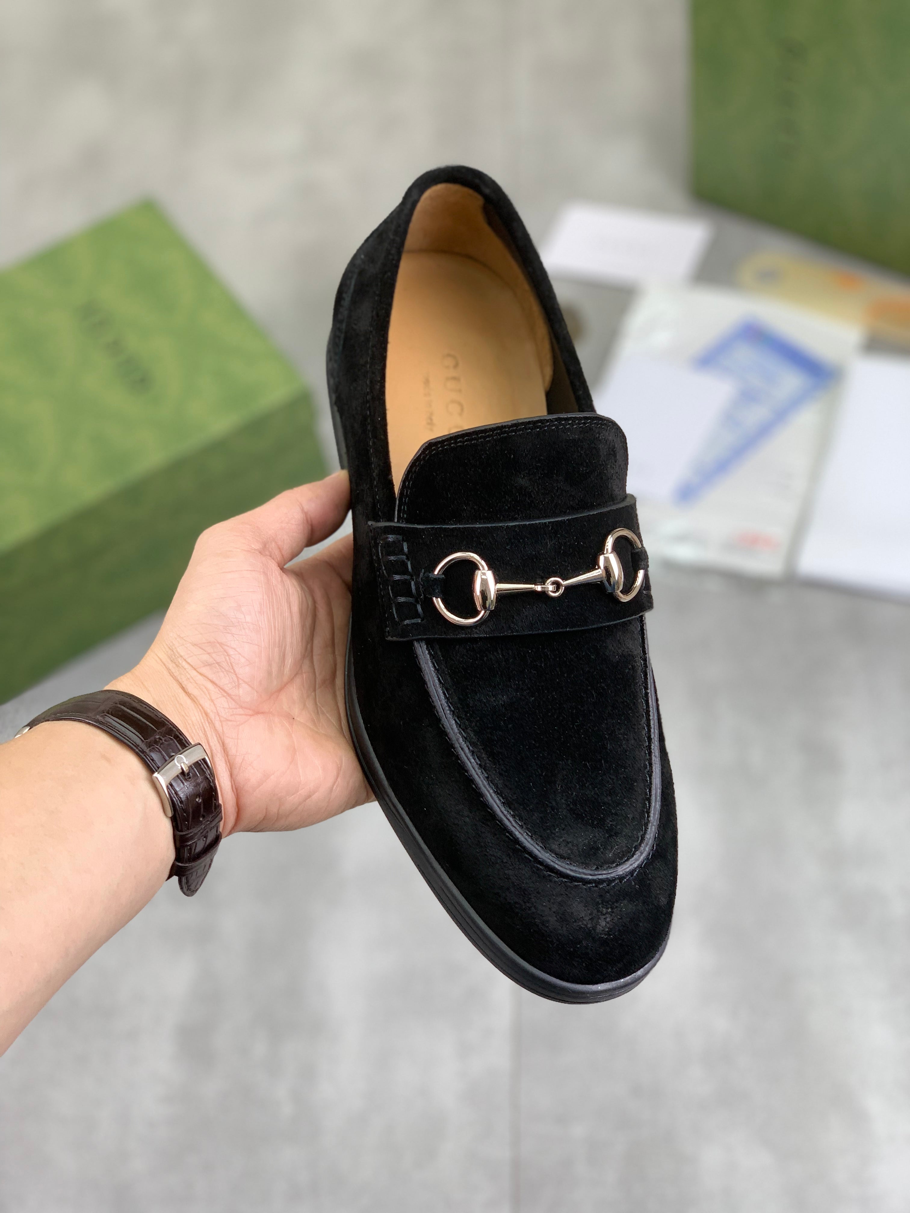 GG Men's Horsebit Loafer Black Suede 524777