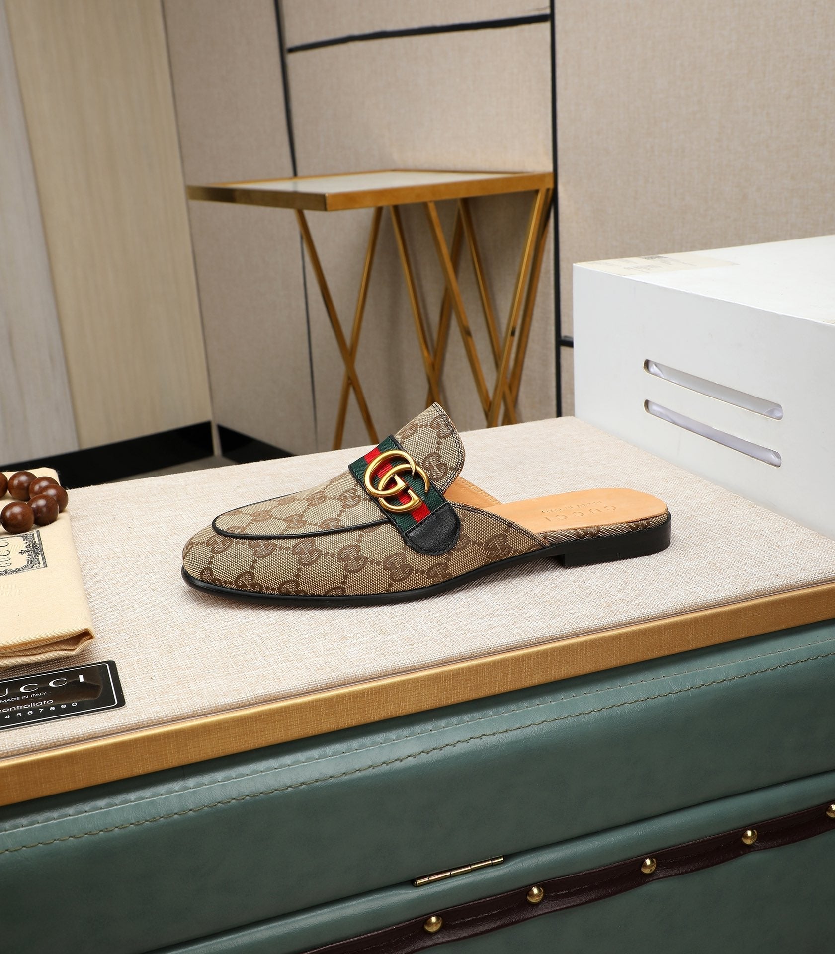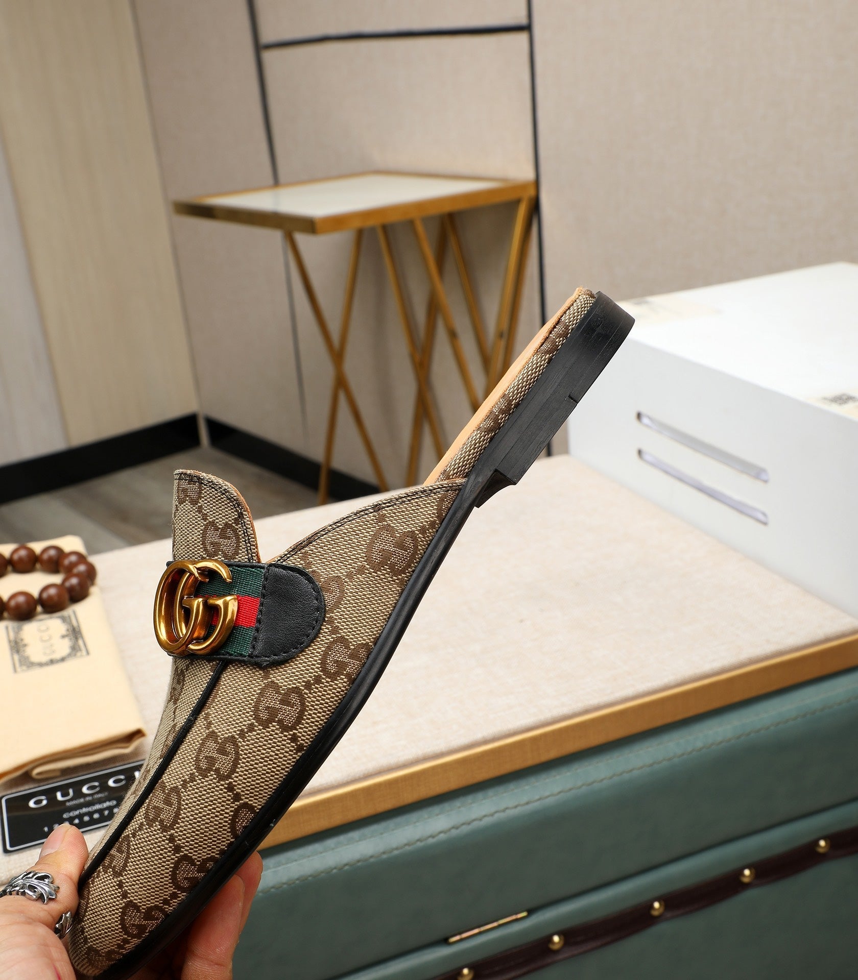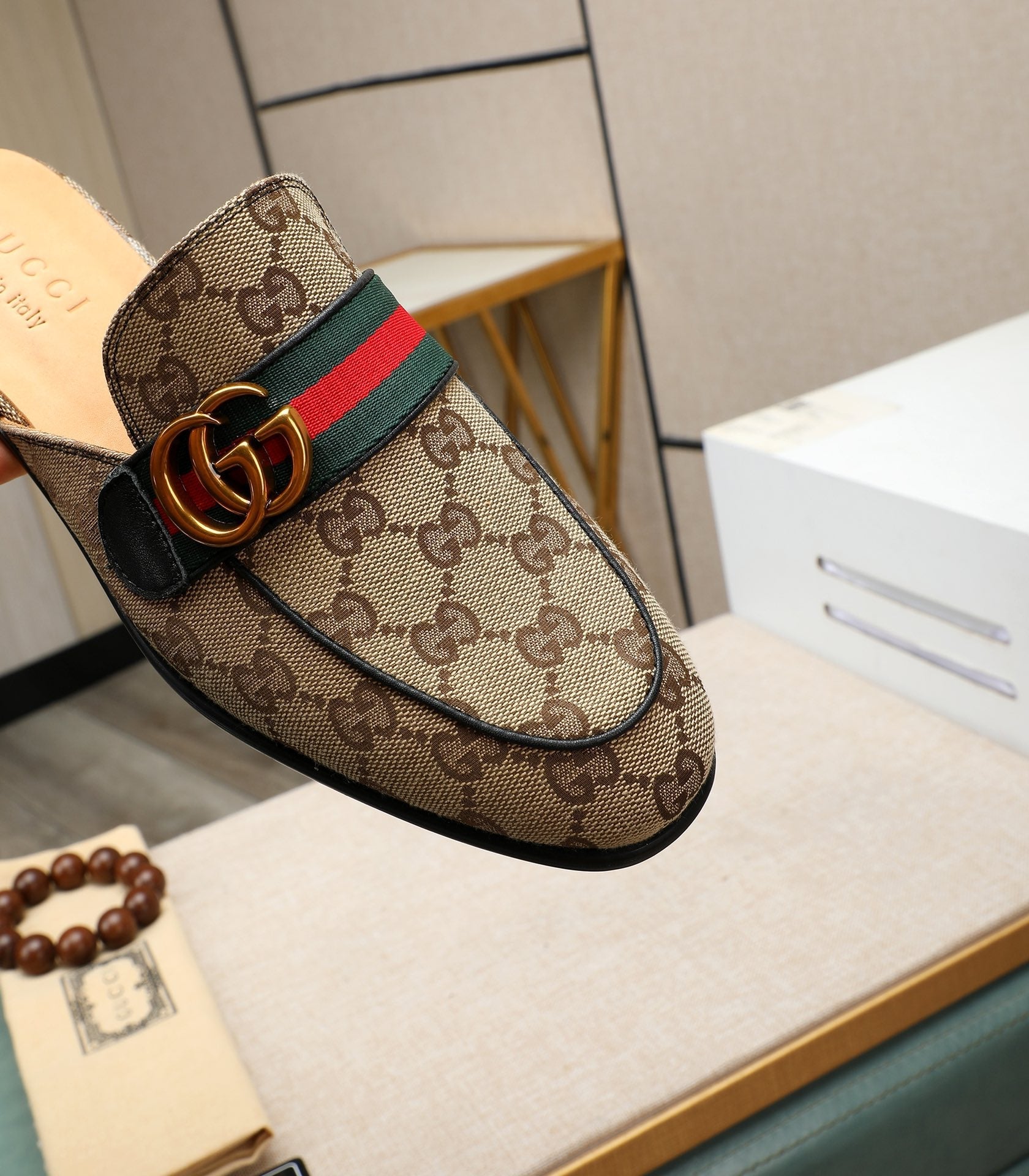 GG Men's Interlocking GG Mule Brown Denim 111477