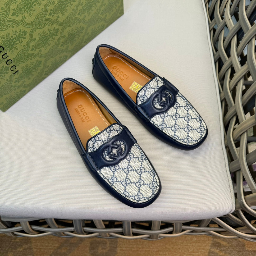 GG Men's Loafer Blue Canvas Cowhide 537556