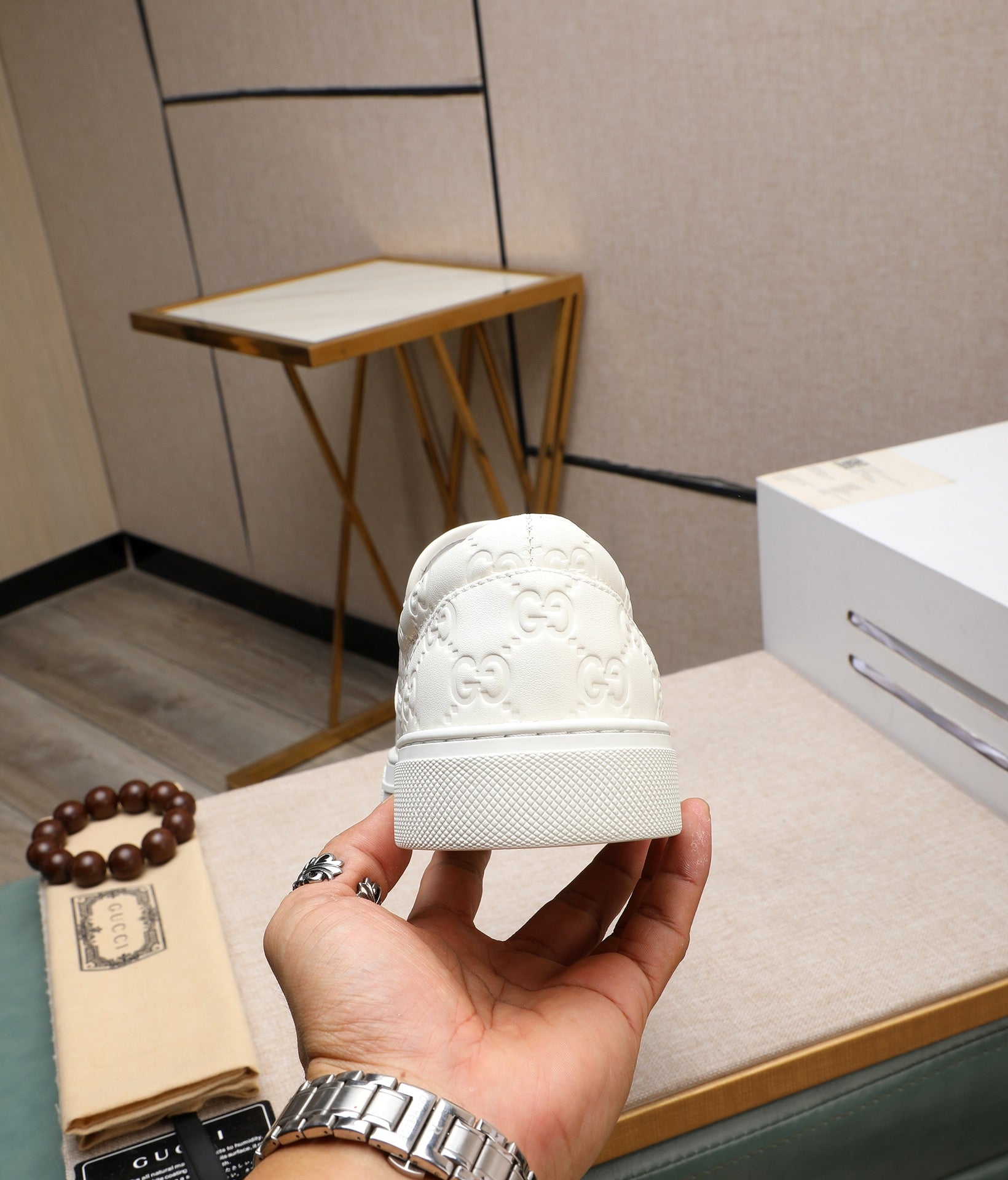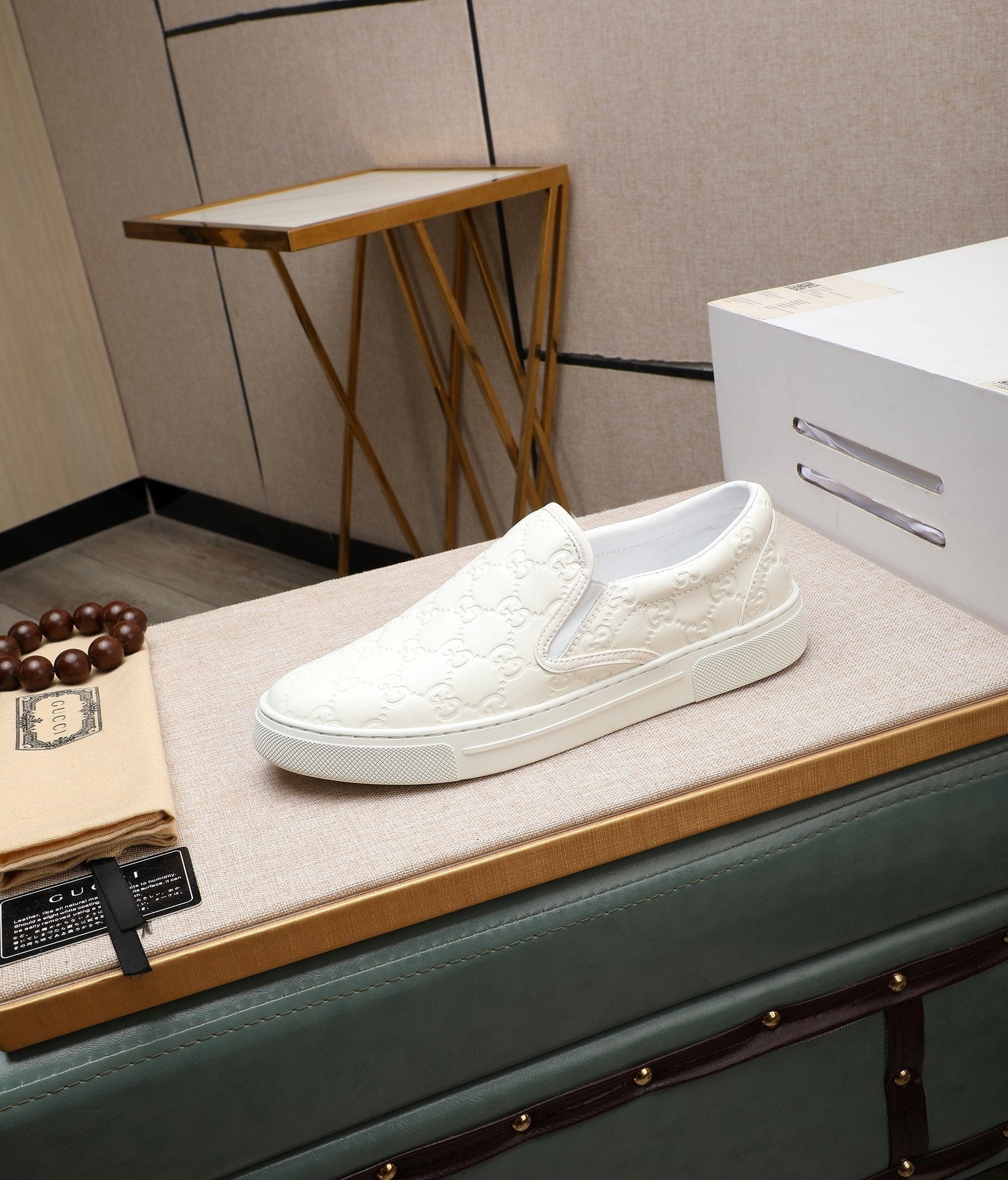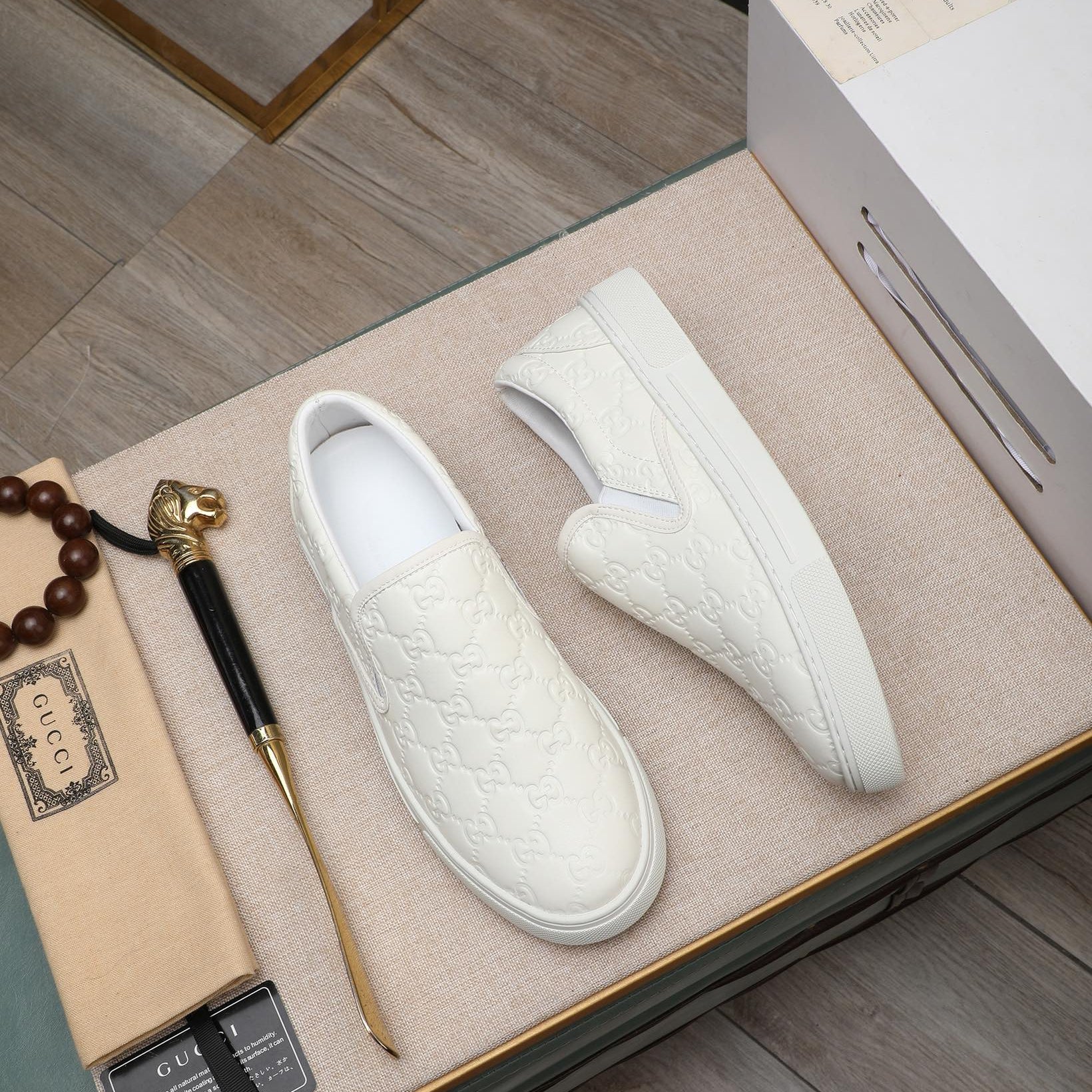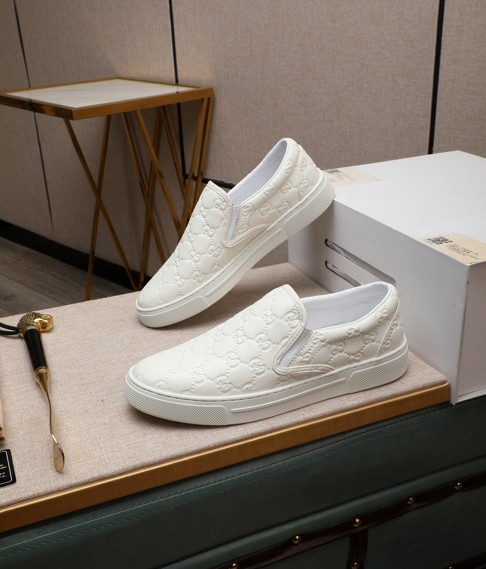 GG Men's Slip on White Embossed Calfskin 518843