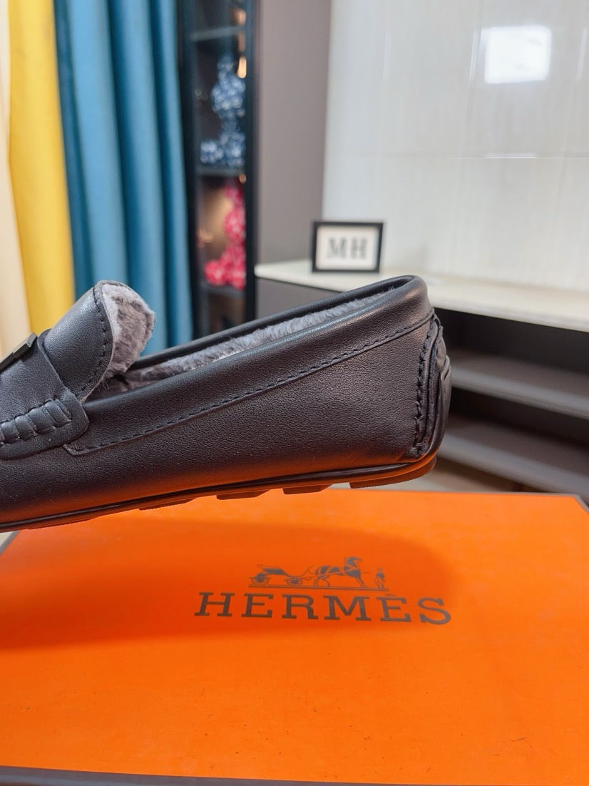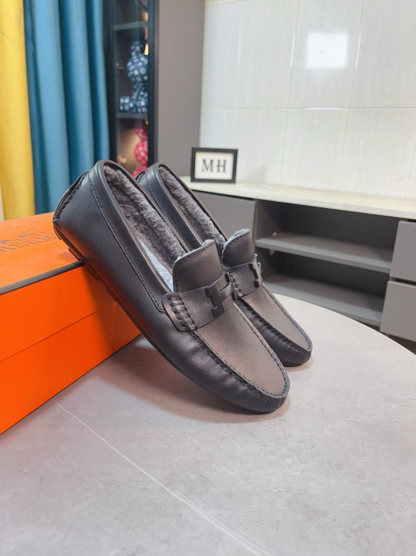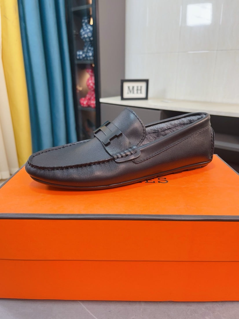 HM Men's Loafer Black Cowhide Fur Lining 524403