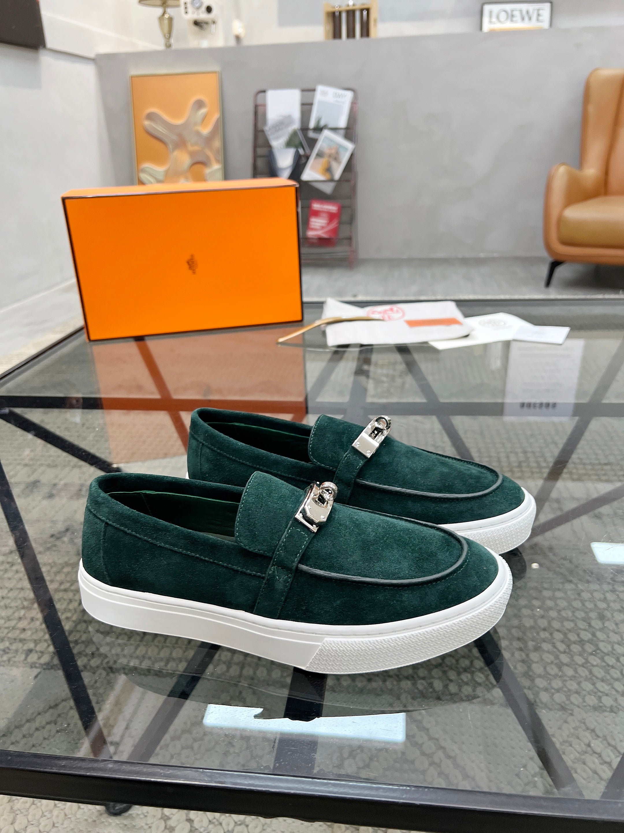 HM Men's Loafers Green Suede 621425