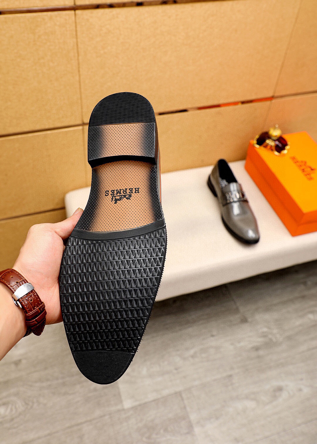 HM Men's Loafers Grey Patent Leather 679793