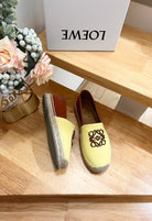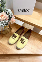 Loew Anagram Espadrille Yellow Brown Leather and Canvas