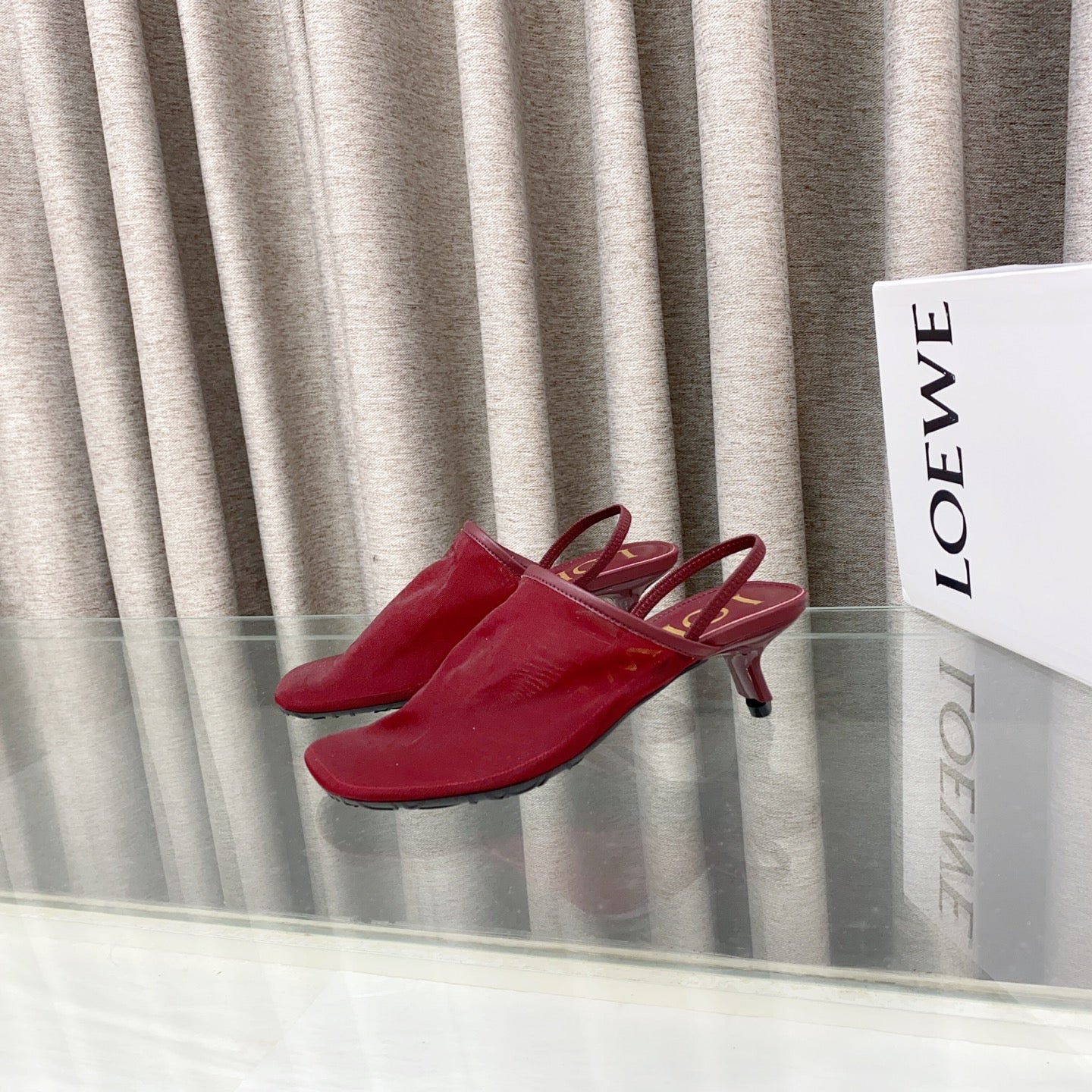 Loewe 25 Petal Slingback Red Mesh Sheepskin