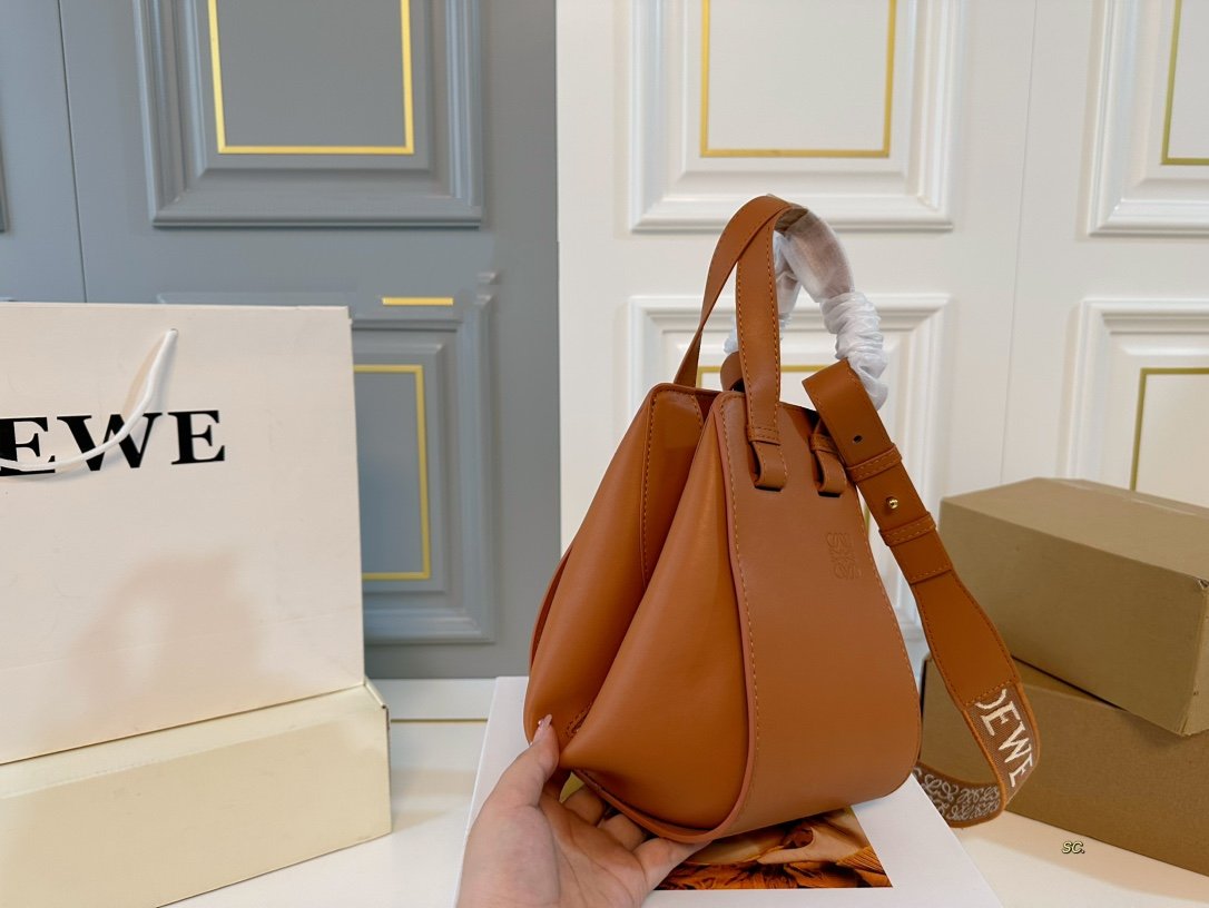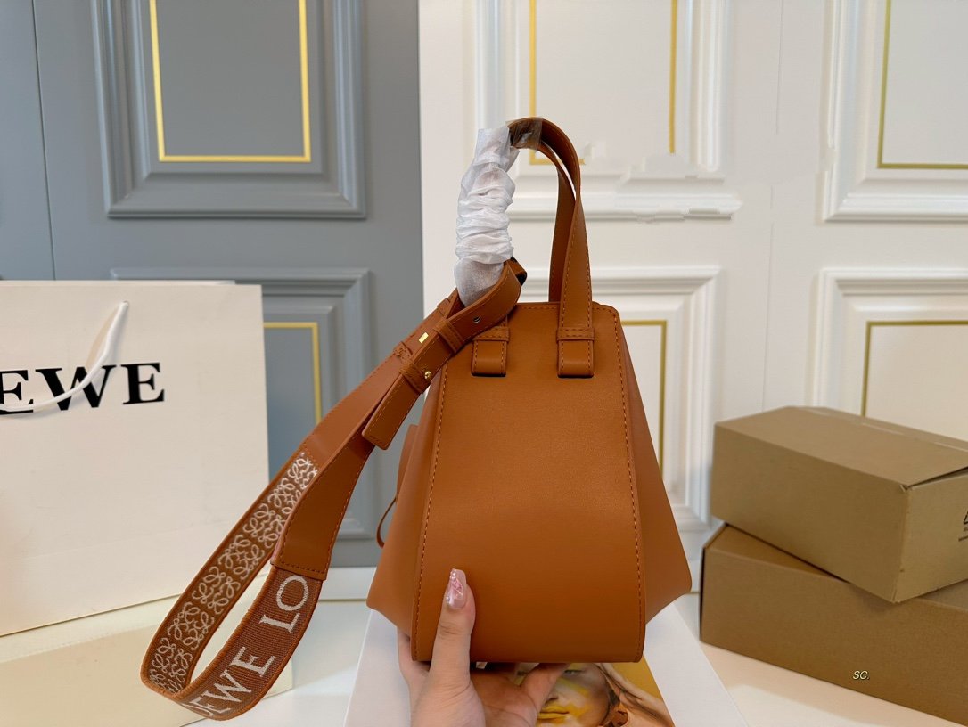 LOE 25 COMPACT HAMMOCK BAG IN OAK SATIN CALFSKIN